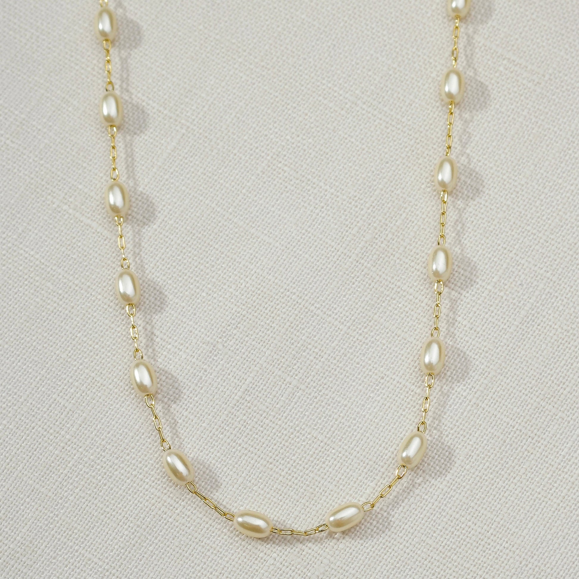 Elegant Elliptical Pearl Necklace | Perfect for Layering & Everyday Wear | Hypoallergenic Gold Jewelry