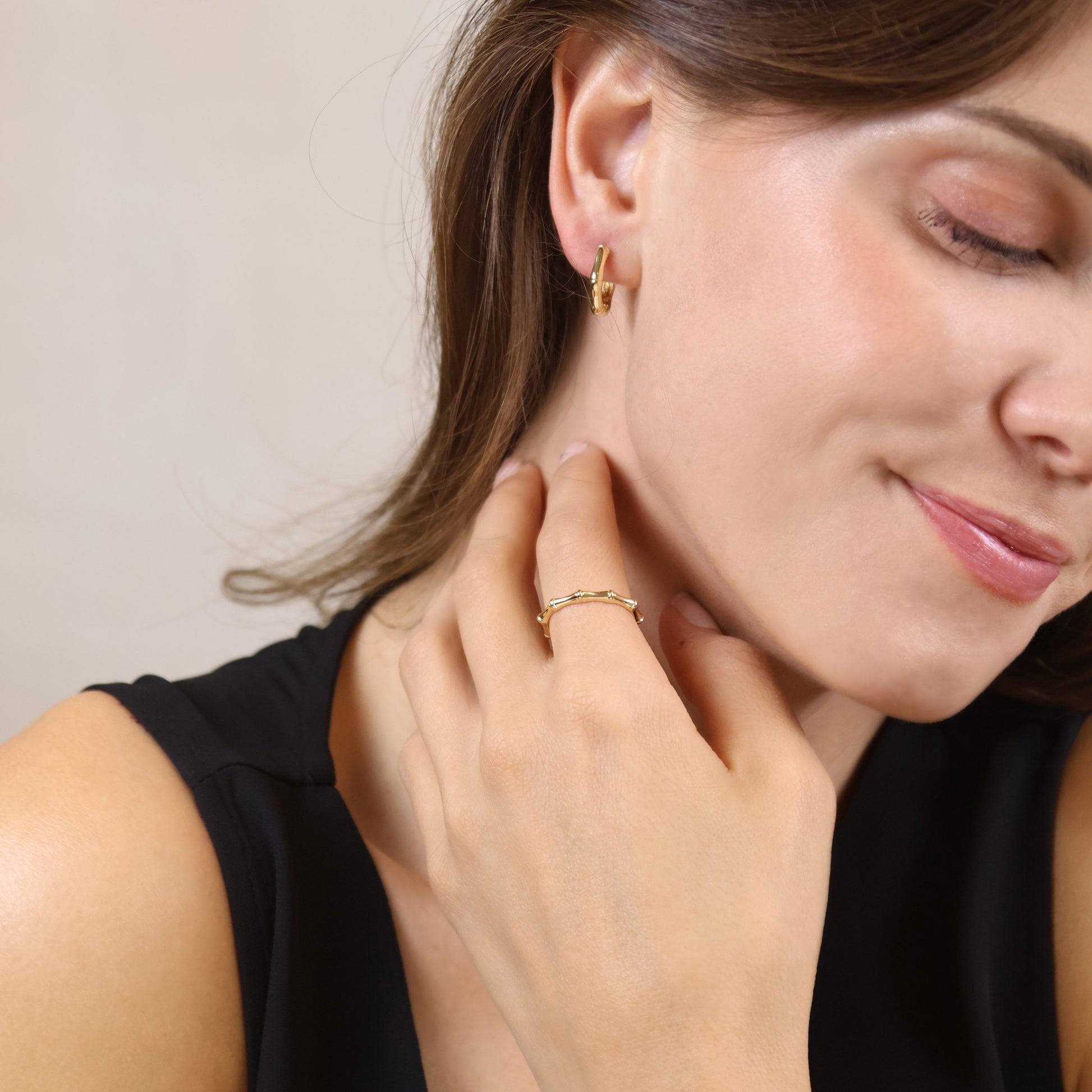 Bamboo Band Ring - Nature Inspired Textured Ring for Women | Unique Statement Ring | Hypoallergenic Waterproof Jewelry