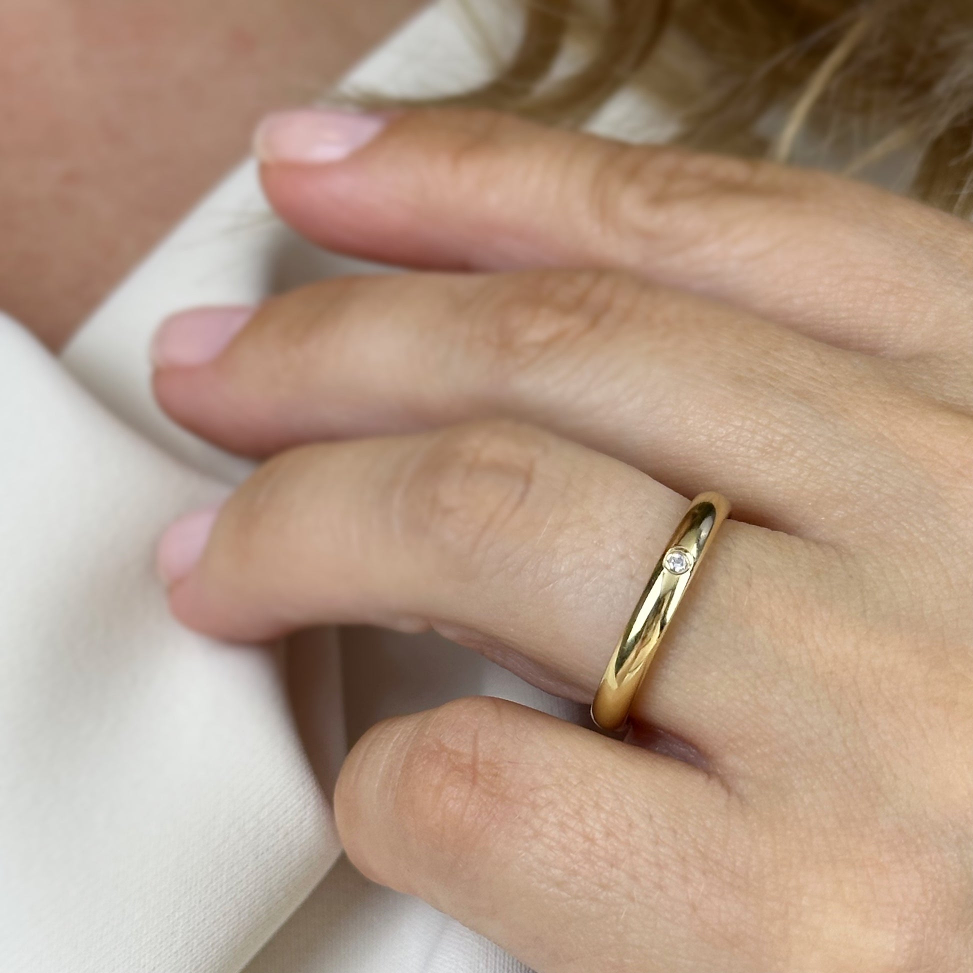 The perfectly proportioned 3mm-wide band offers comfortable wear on any finger, making a subtle yet elegant statement. This versatile width is ideal for everyday wear, stacking with other rings, or wearing solo as a chic accent piece.