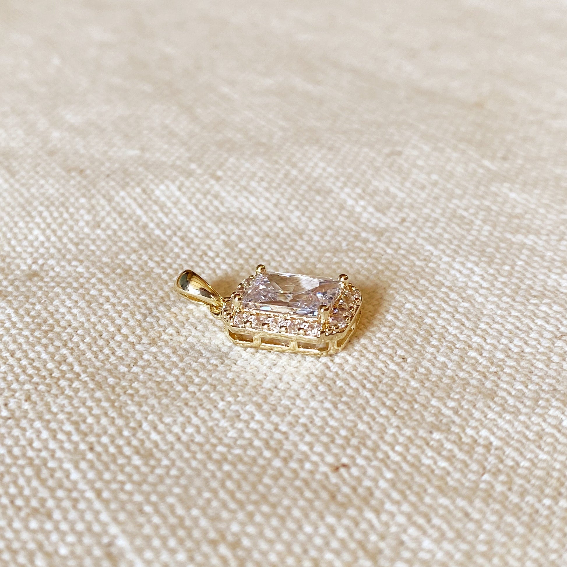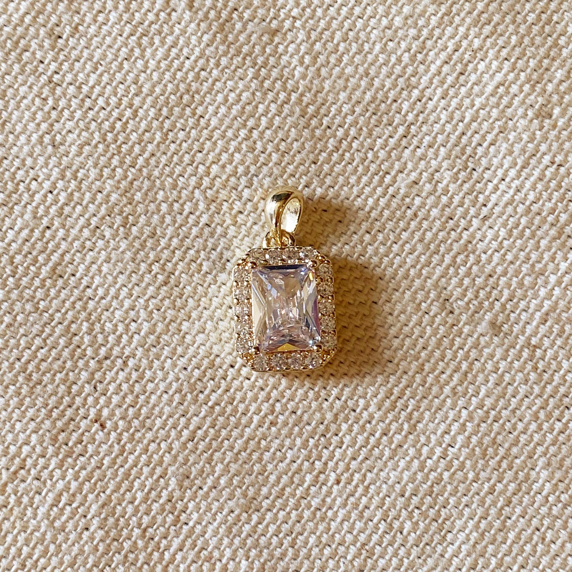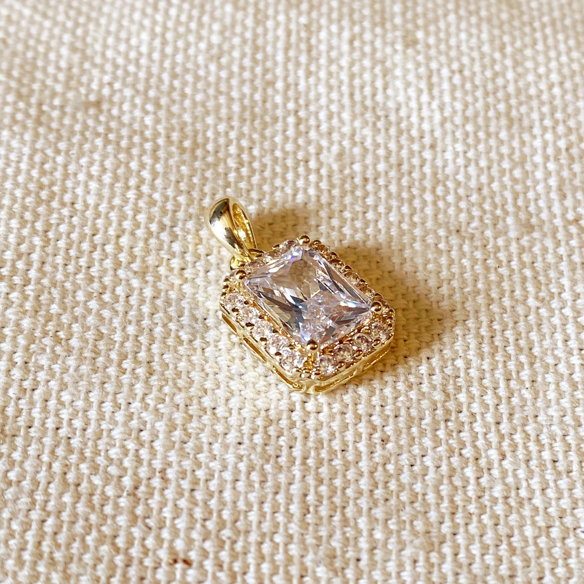 18k Gold Filled Clear Cubic Zirconia Cushion Cut Charm