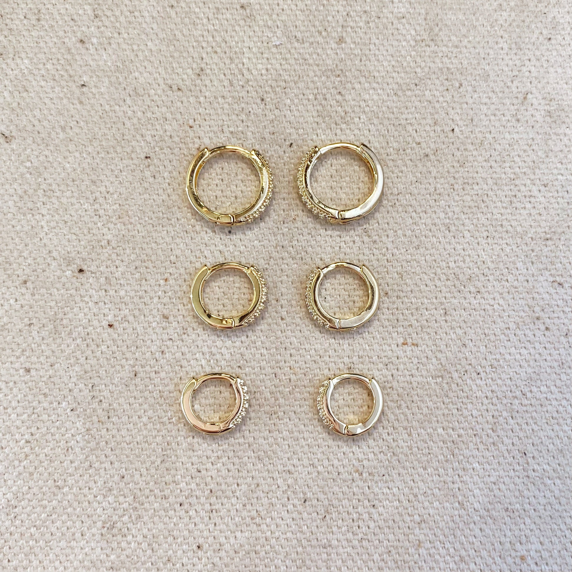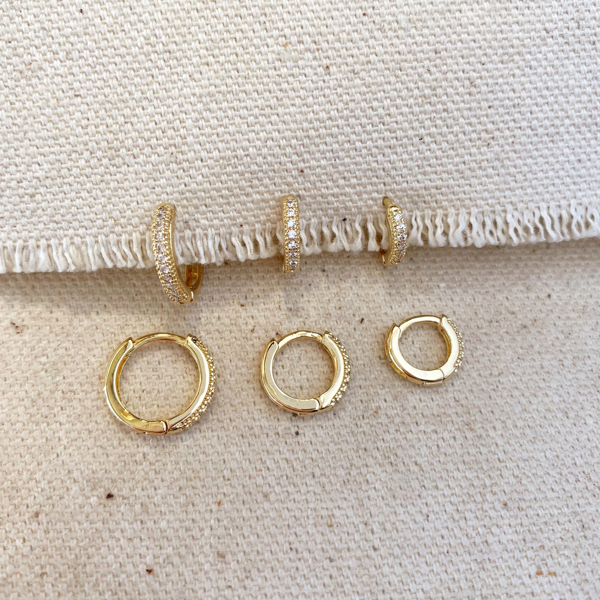 Not one, nor two, but three huggies featuring a fashionable Fuchsia cubic zirconia to facilitate your choice of which size to wear.