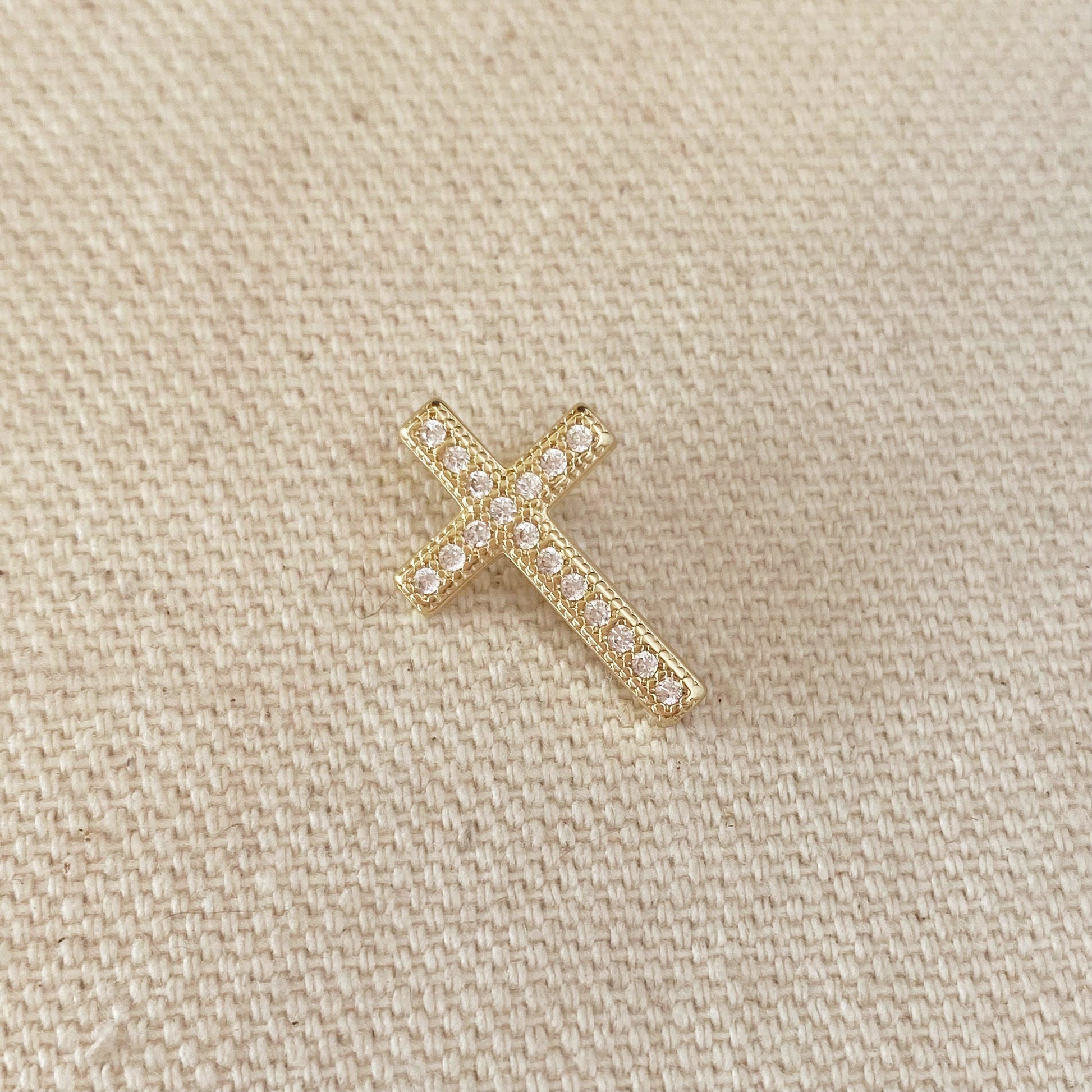 Express your faith with elegance through this stunning 18K gold filled cross pendant adorned with brilliant micro cubic zirconia stones. A perfect symbol of devotion and style, this exquisite cross pendant brings spiritual meaning and sophisticated beauty to any jewelry collection.
