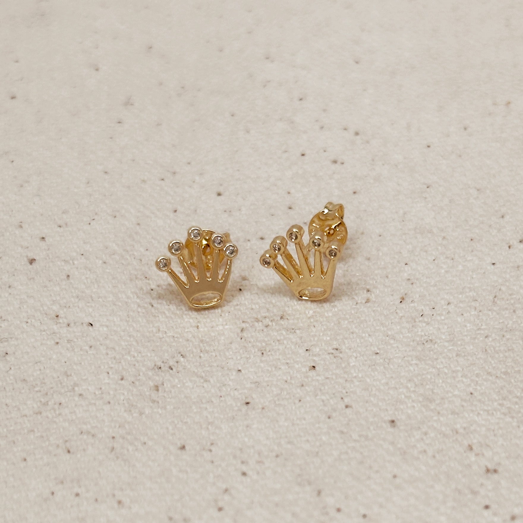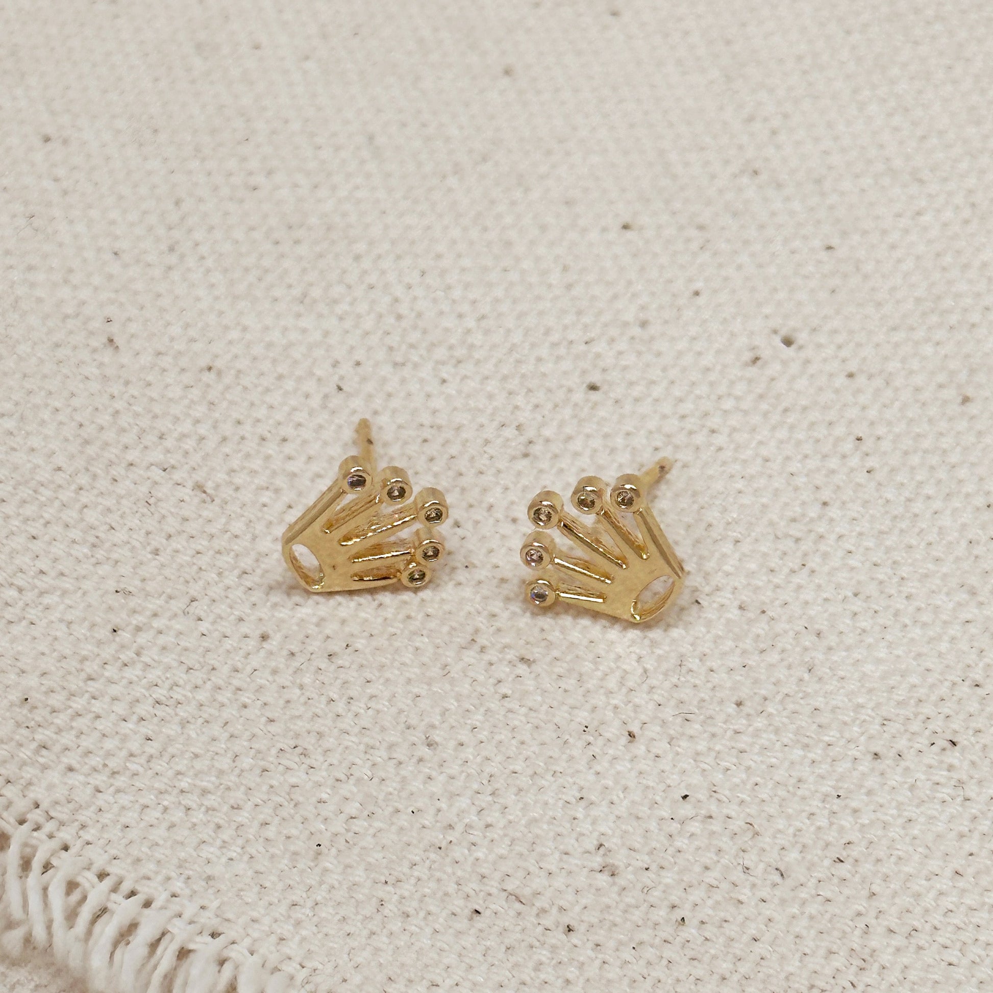 Elevate your style with our 18k Gold Filled Crown CZ Stud Earrings. The elegant design and petite size make it ideal for any event. Revel in the added luxury and sparkle these exquisite earrings bring to your attire.