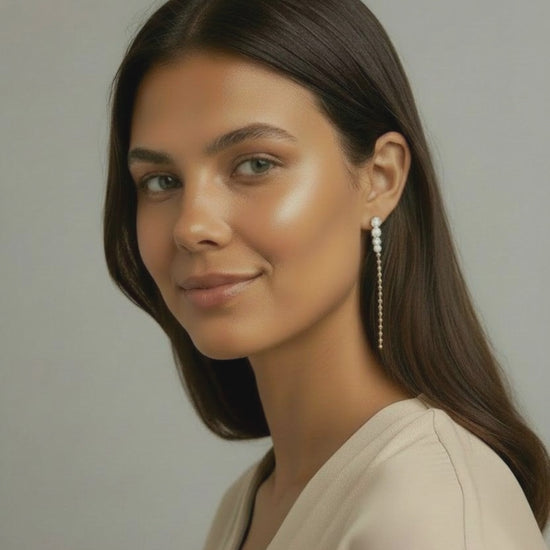 Long Gold Drop Earrings - CZ and Bead Gradient Earrings - Water Resistant Dangle Earrings