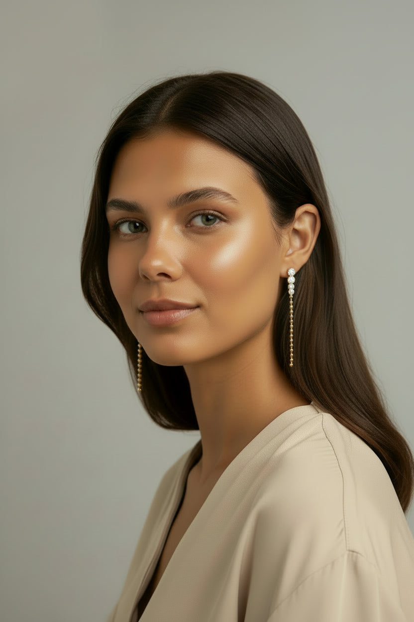 Why Choose Gradient Design? The cascading gradient of CZ stones and beads creates a mesmerizing effect that draws the eye and adds movement to your look. This unique design technique ensures your earrings are conversation starters that reflect your individual style.
