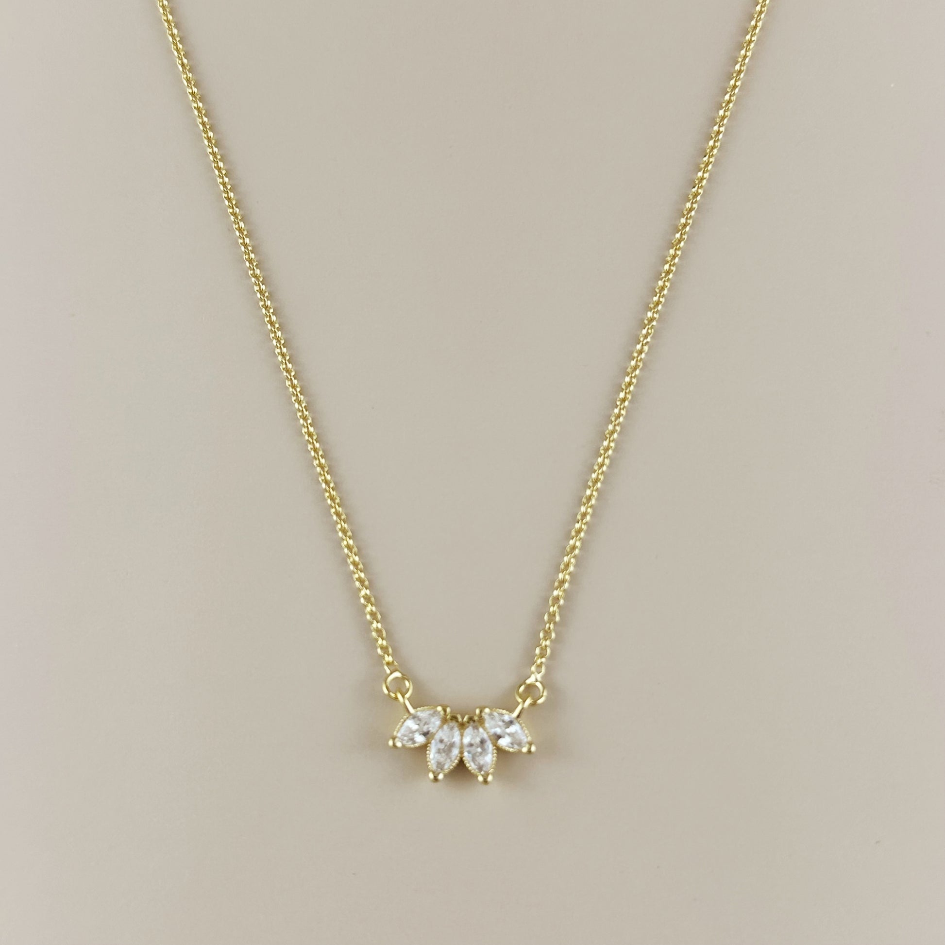 Embrace timeless elegance with our 18k Gold Filled Lotus Necklace, where vintage charm meets modern sophistication. Each pendant features a meticulously crafted resemblance of a lotus flower design, adorned with a brilliant cubic zirconia stone at its center. The bezel setting is enhanced with delicate vintage-inspired filigree work along the sides, adding an heirloom quality to this contemporary piece..