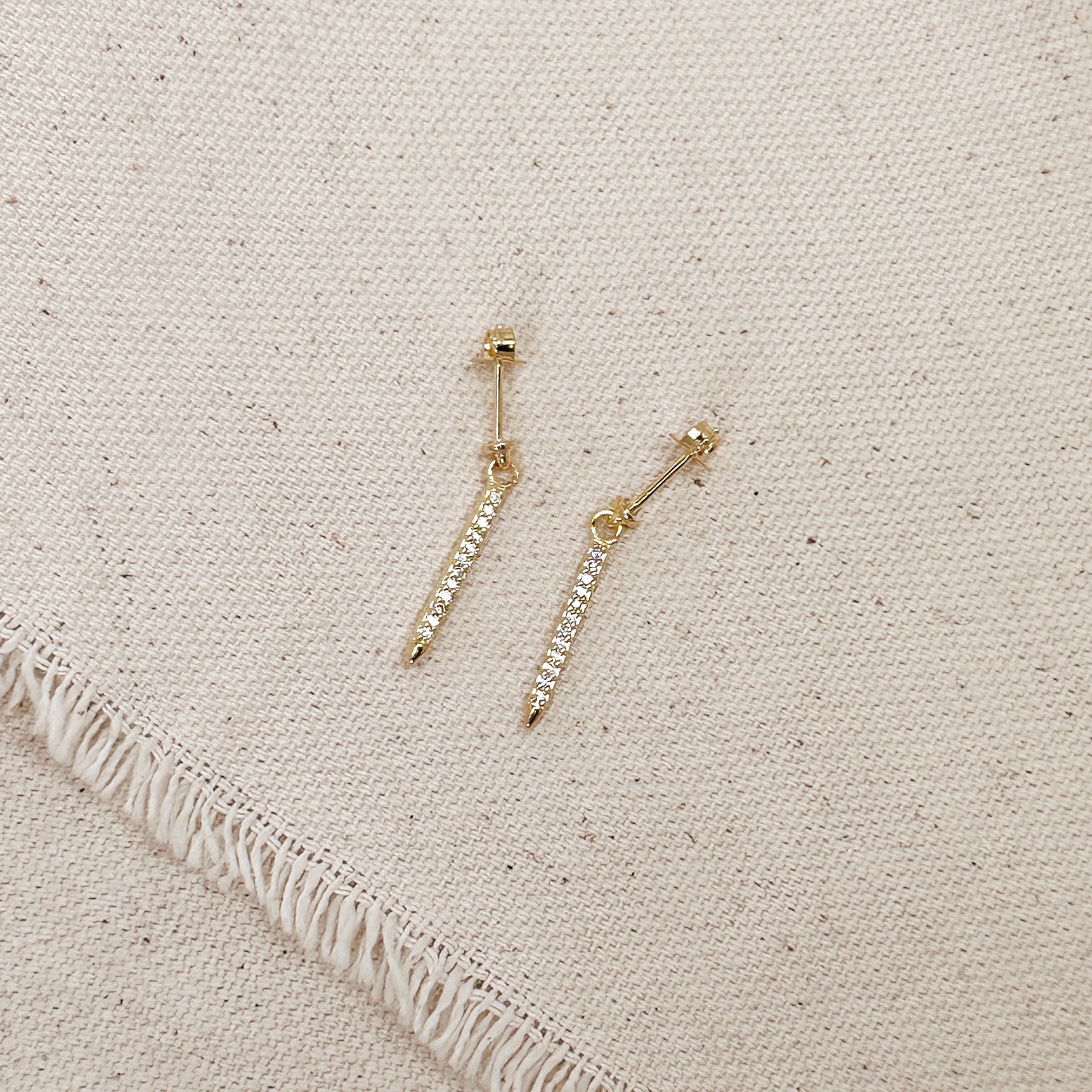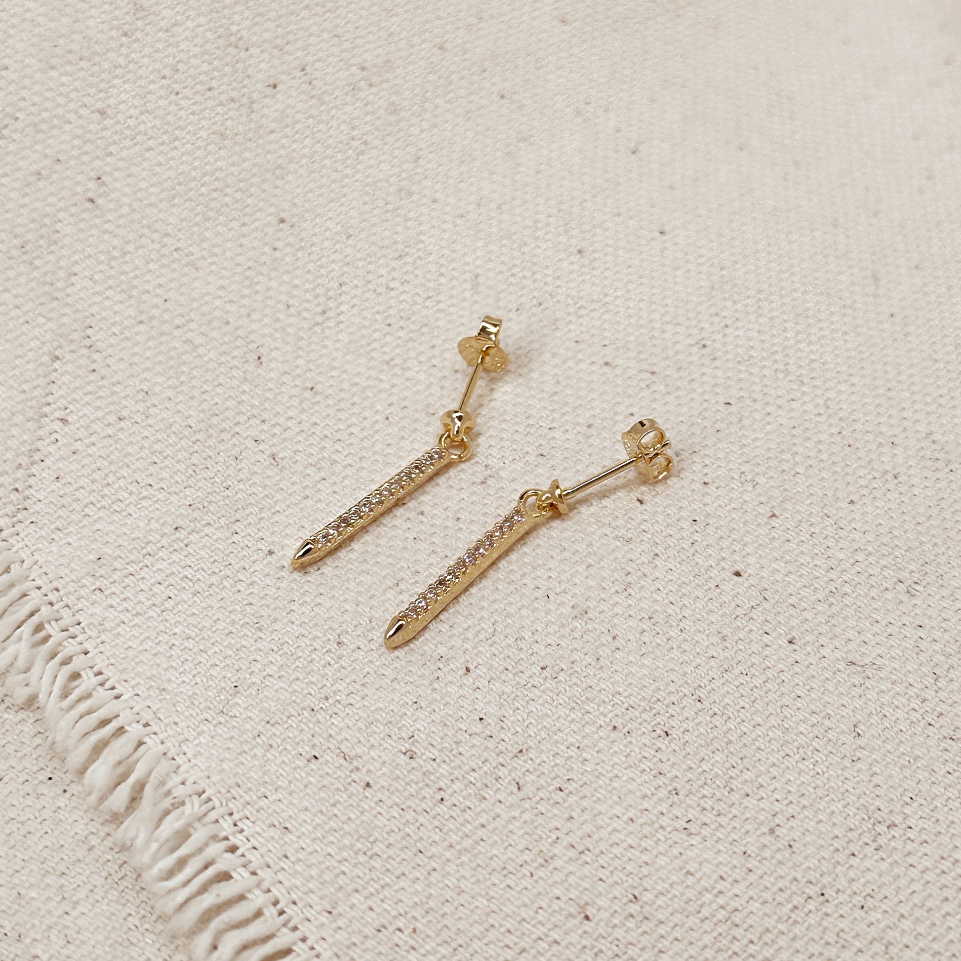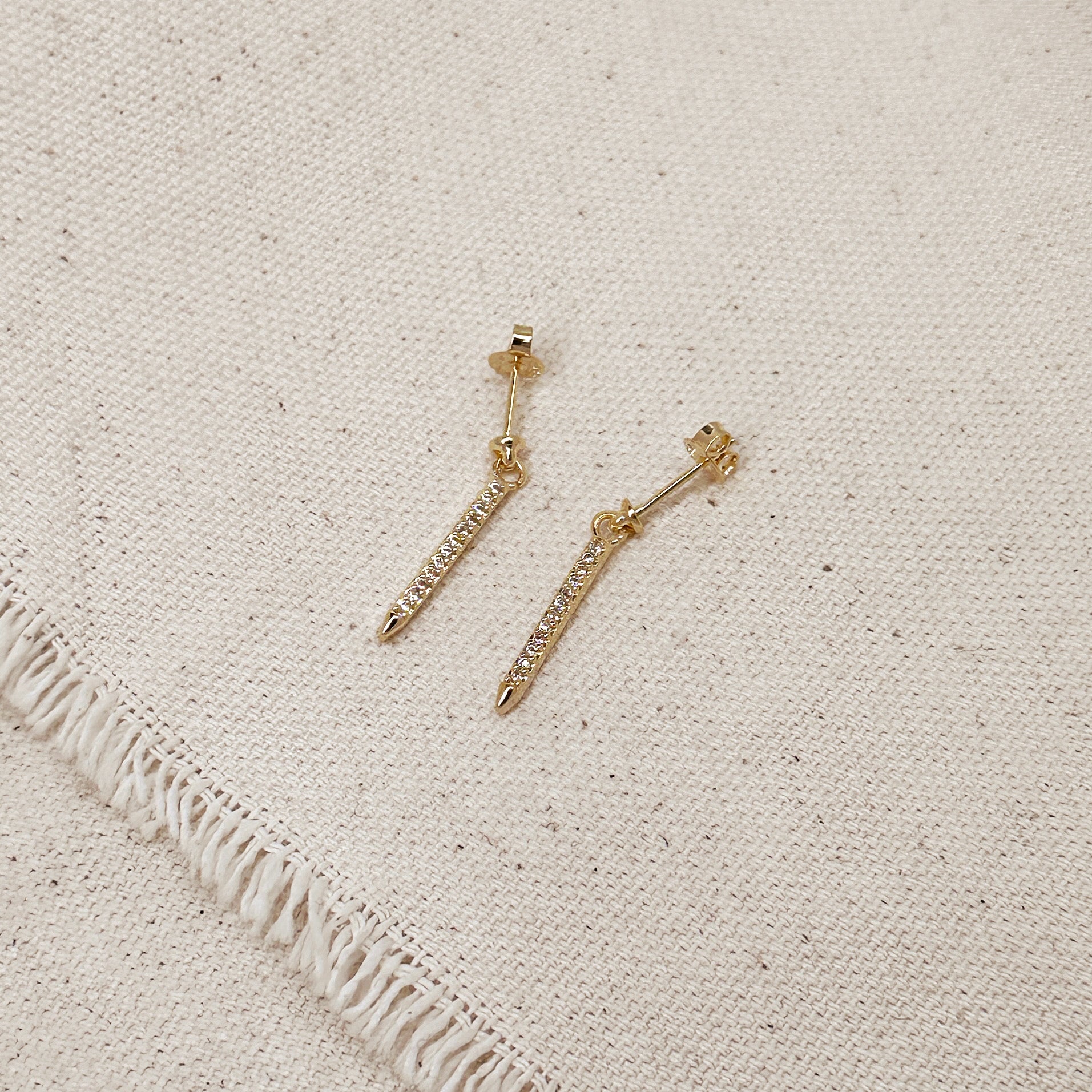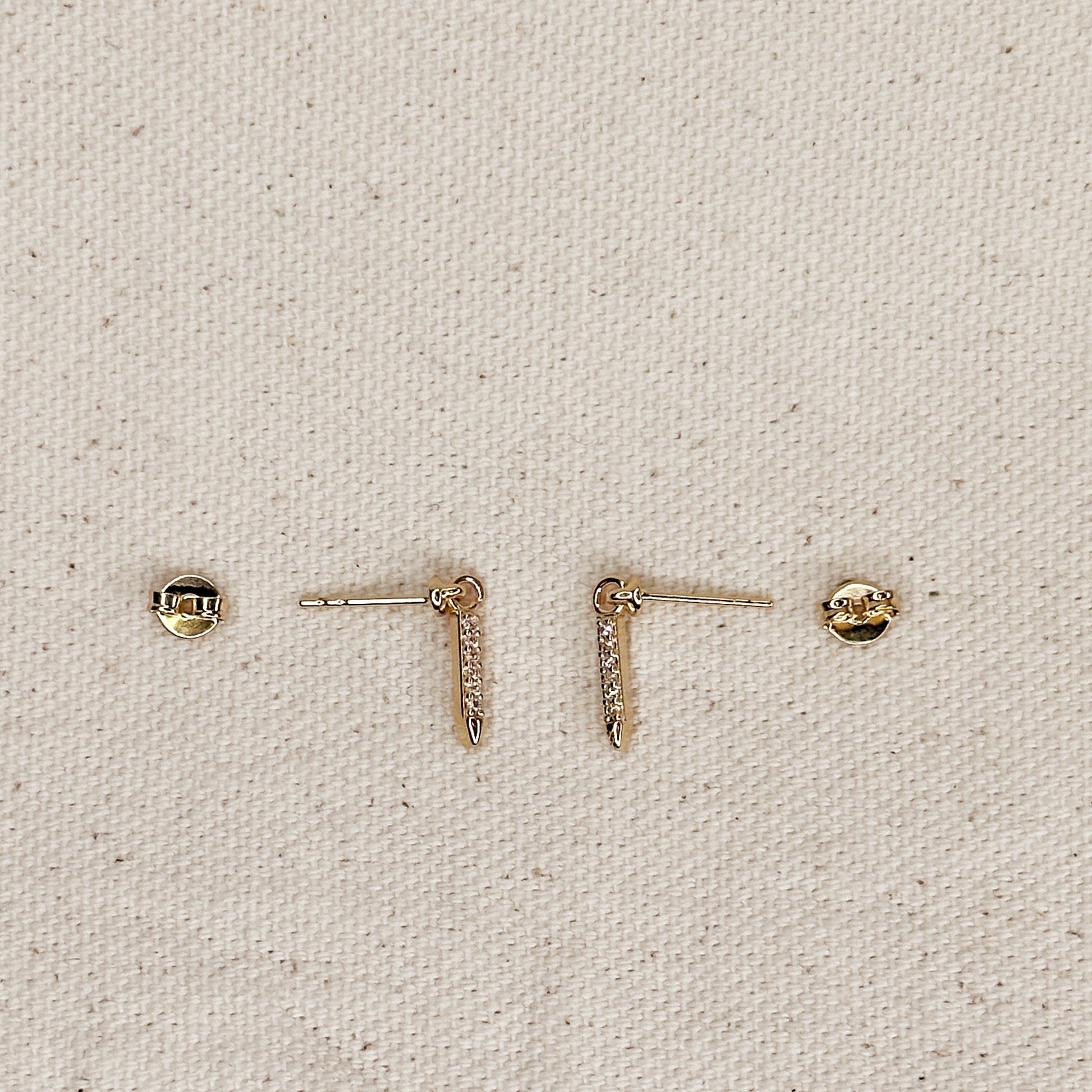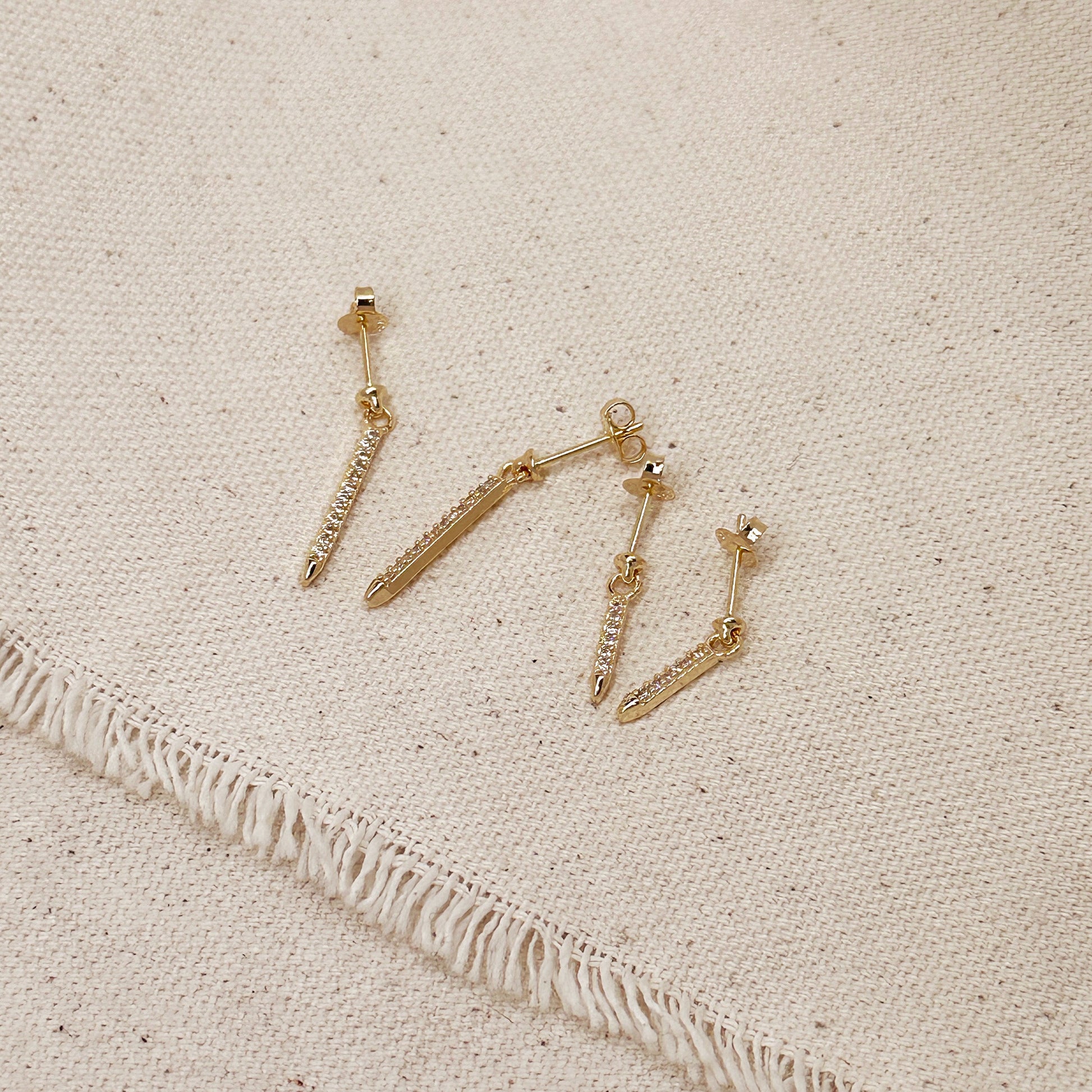 Elevate your look with our 18k Gold Filled CZ Spear Drop Earrings. These modern and minimalist earrings will add a touch of elegance to any outfit. With sparkling cubic zirconia details, these earrings are simply gorgeous and perfect for any occasion. Make a statement and feel confident in your style with these must-have earrings.