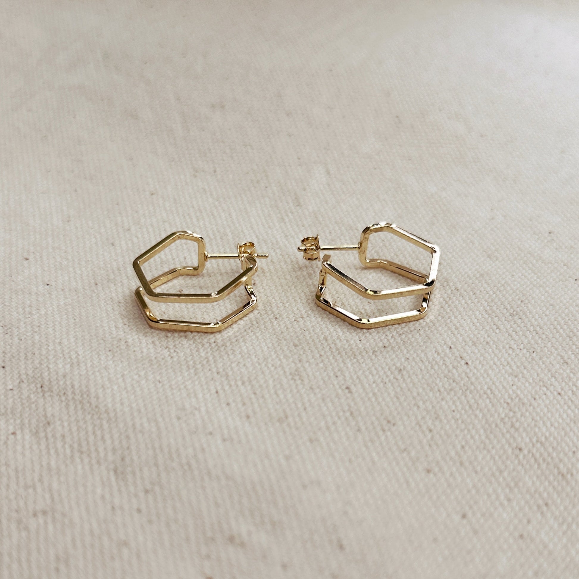 Add a touch of modern elegance to your wardrobe with these unique 18k gold filled double wire geometric C hoop earrings. The sleek design is both stylish and versatile, making them the perfect addition to any outfit. Elevate your look and make a statement with these must-have earrings!