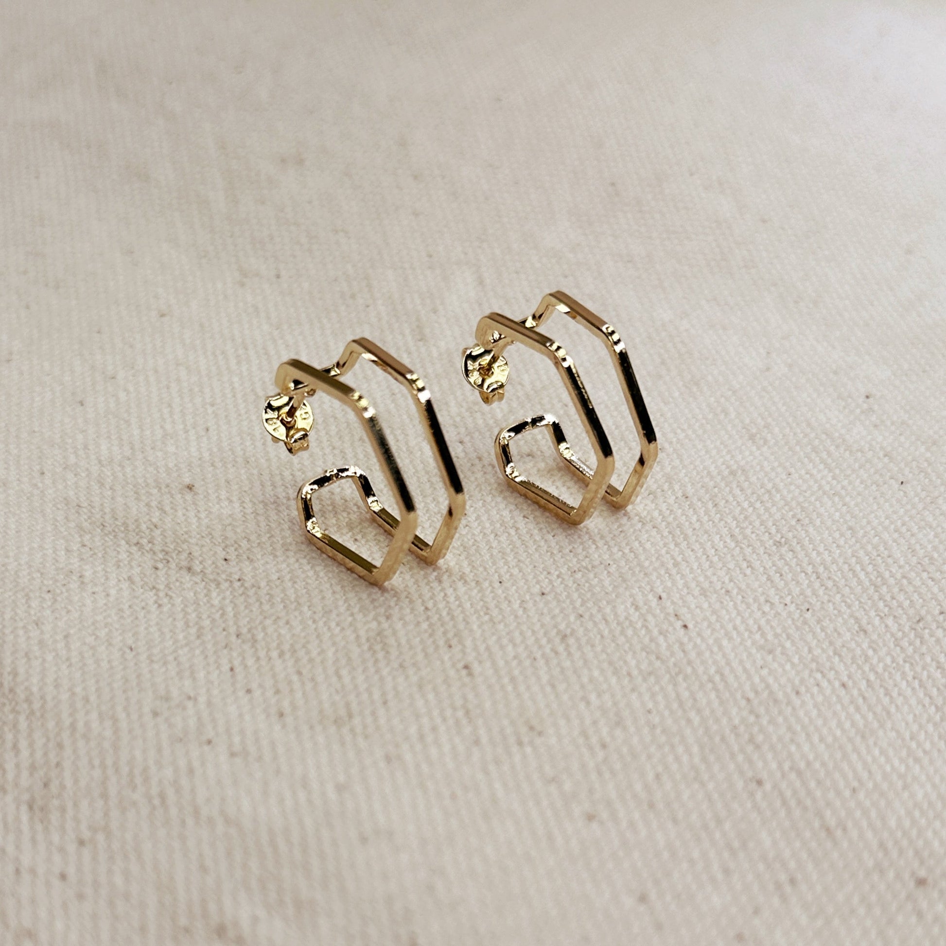 18k Gold Filled Double Wire Geometric C Hoop Earrings