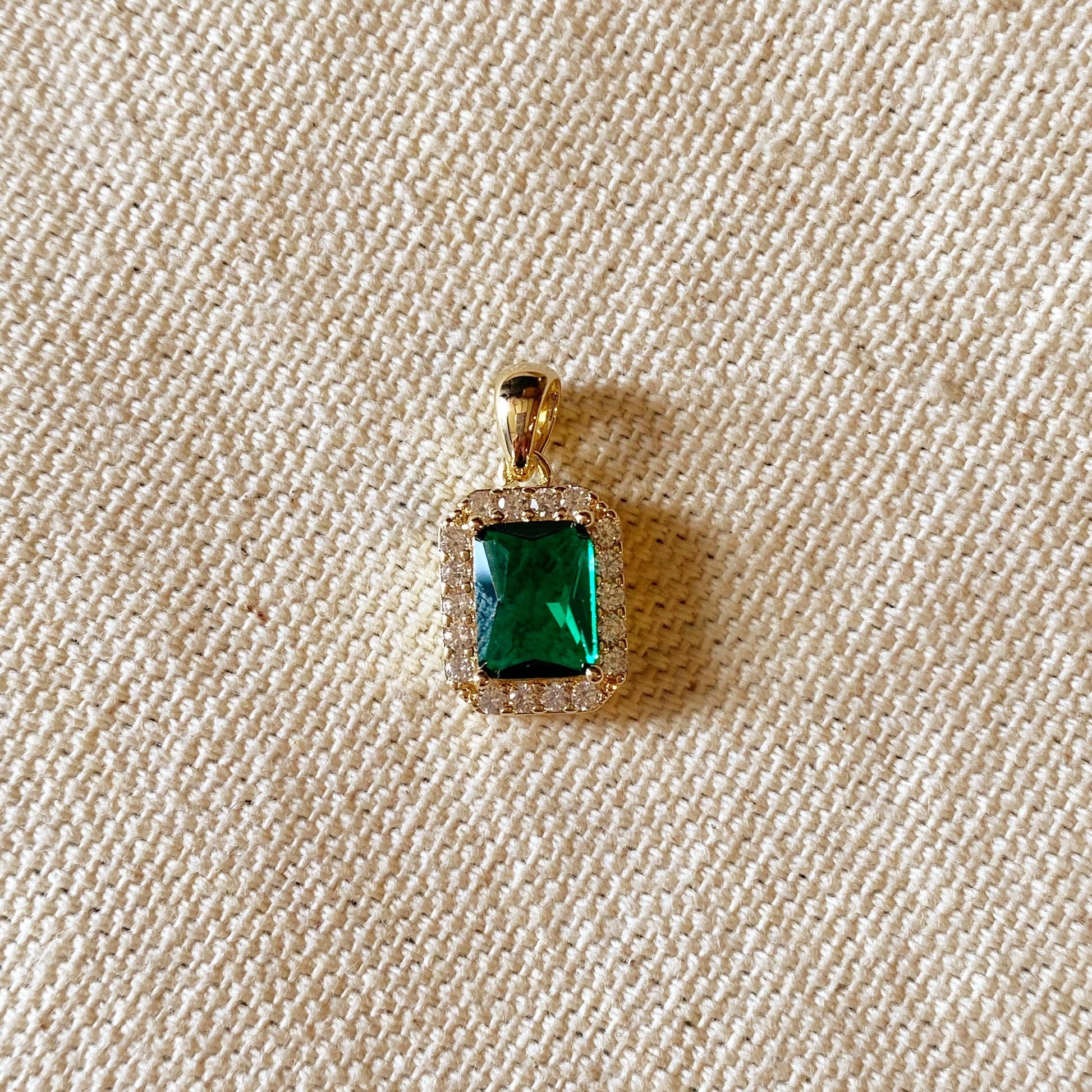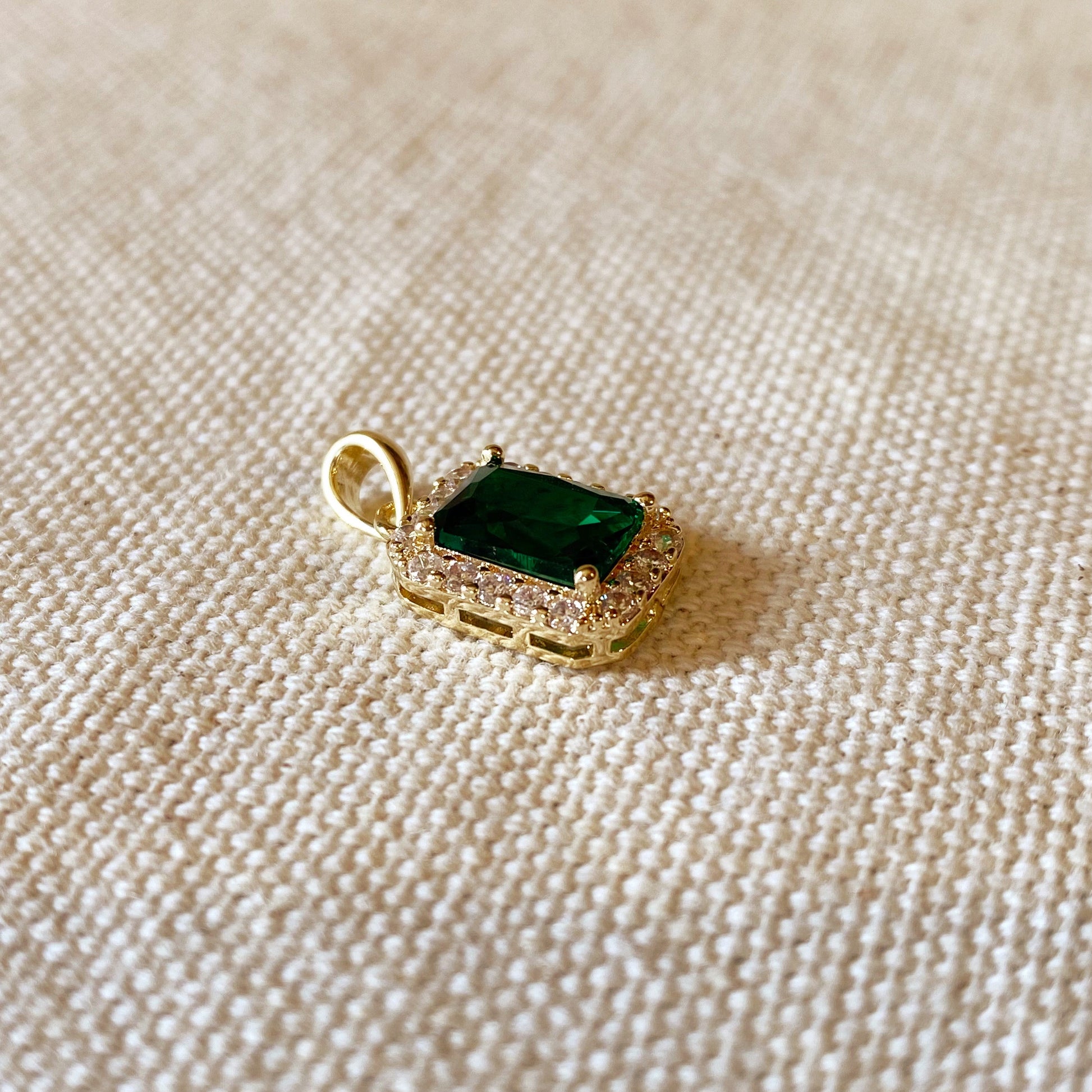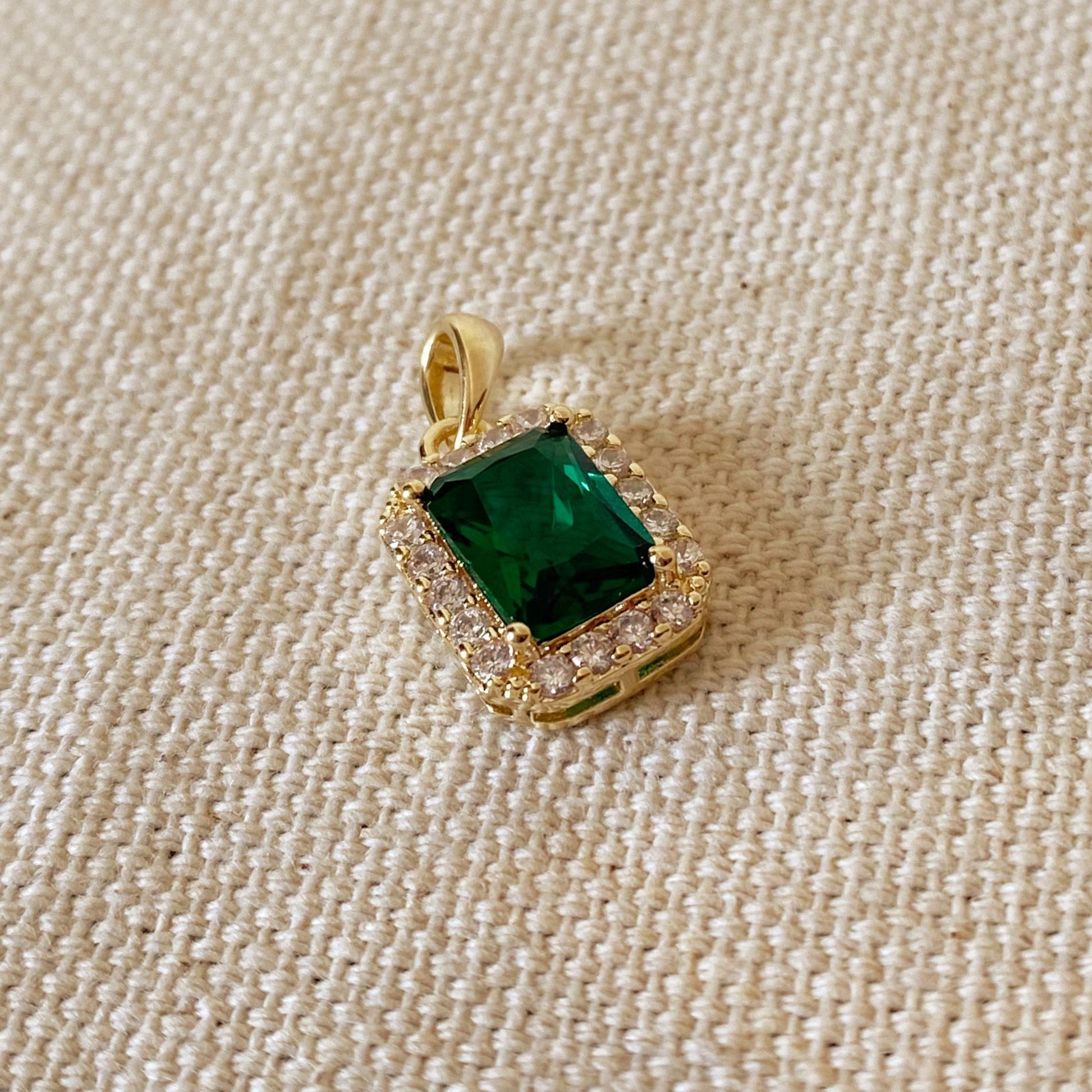 18k Gold Filled Emerald Cubic Zirconia Cushion Cut Charm
