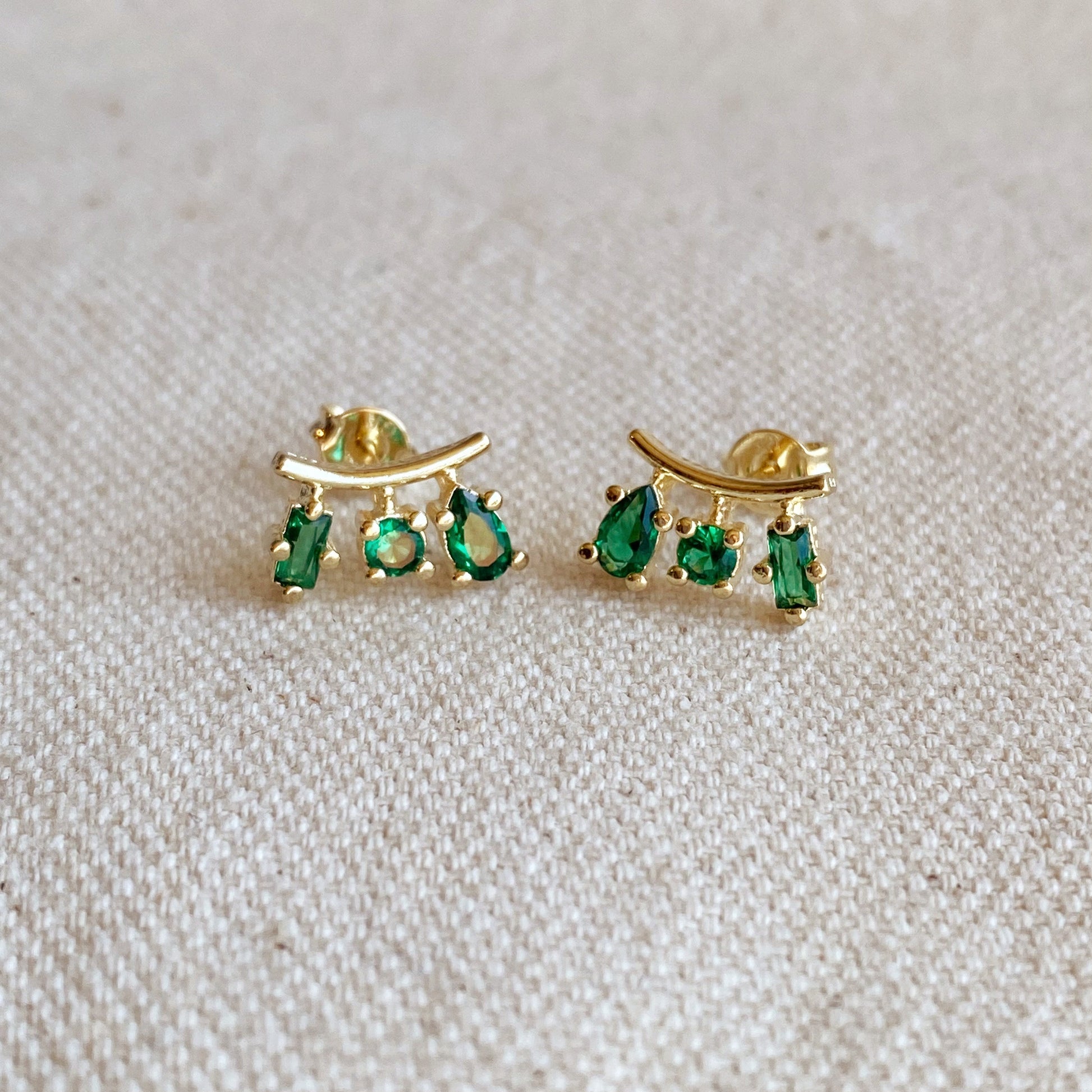18k Gold Filled Emerald Cubic Zirconia 3-Shapes Stud Earrings