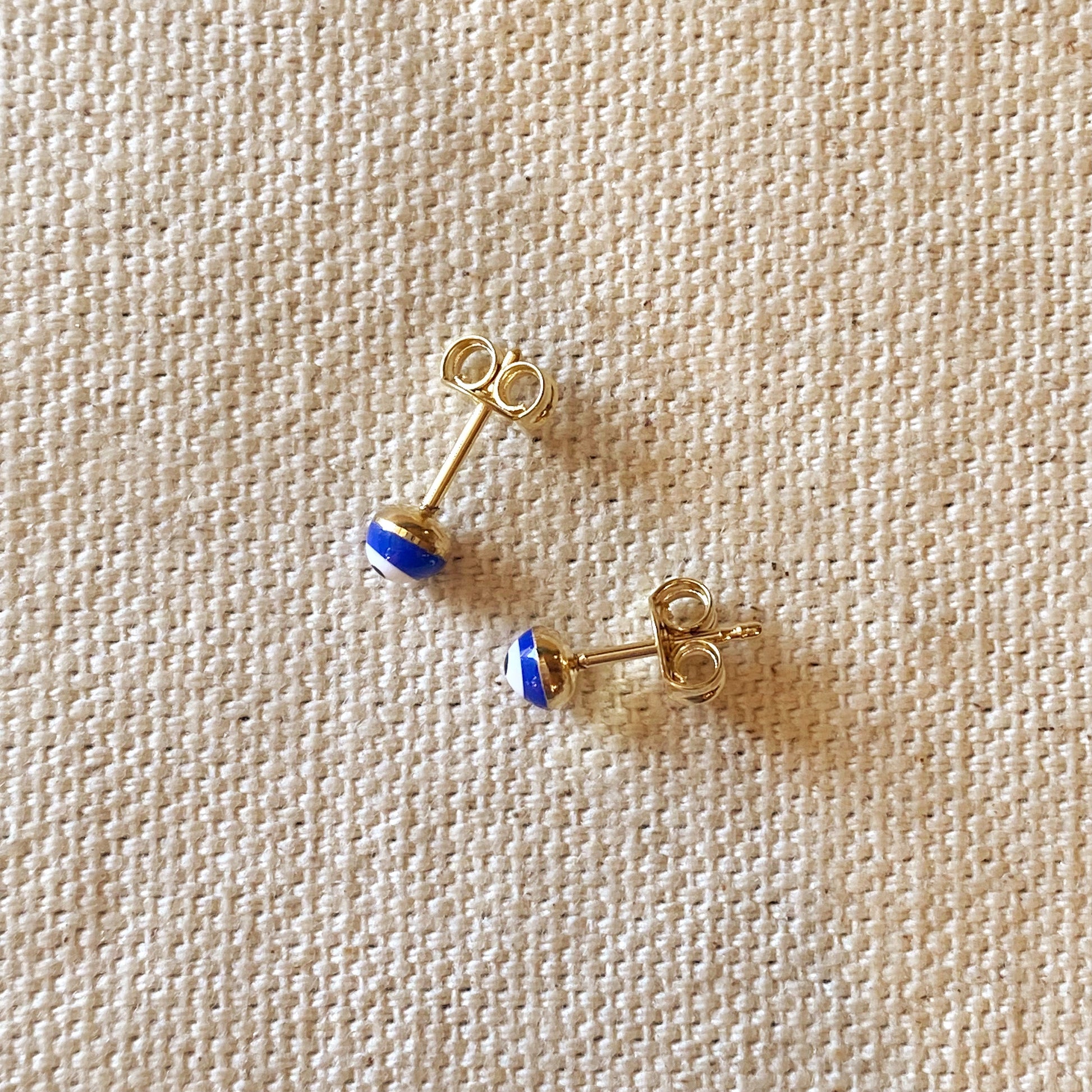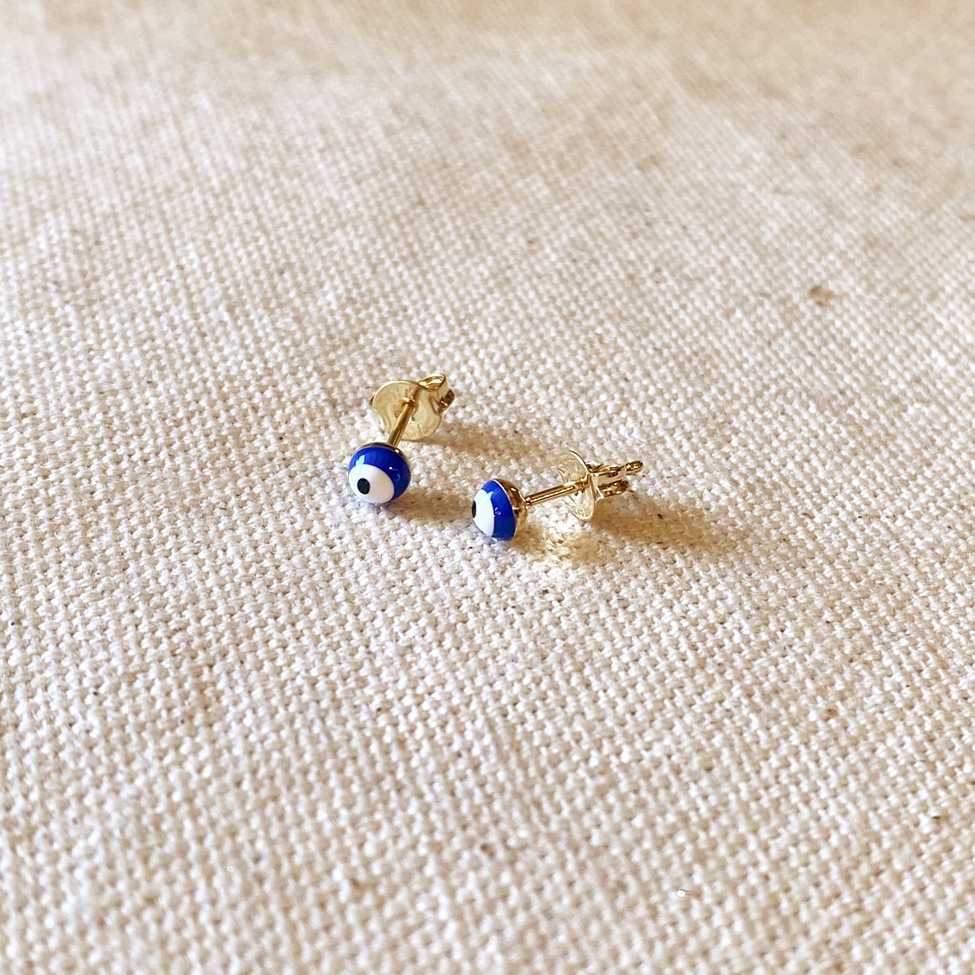 A bigger version of our minimalist 18k Gold Filled evil eye stud earrings. Now in 4mm size diameter. Features a blue-colored enamel finish.