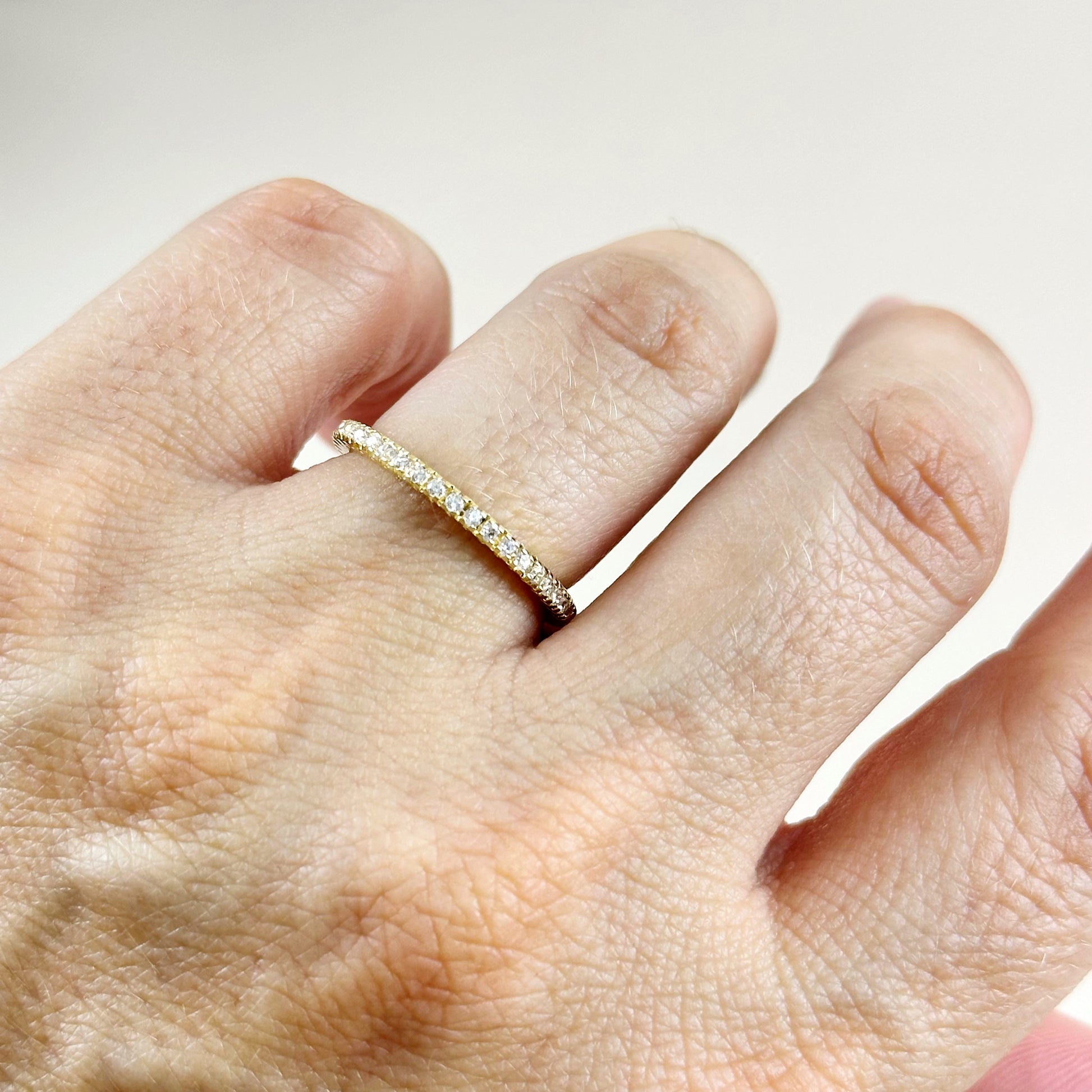 Tags: eternity ring, stackable ring, 18k gold filled ring, cubic zirconia wedding band, micro CZ ring, infinity ring, waterproof jewelry, hypoallergenic ring, delicate gold ring, stacking ring set, wedding ring, engagement ring alternative, anniversary ring, pavé ring, Brazilian handmade jewelry, women's gold ring