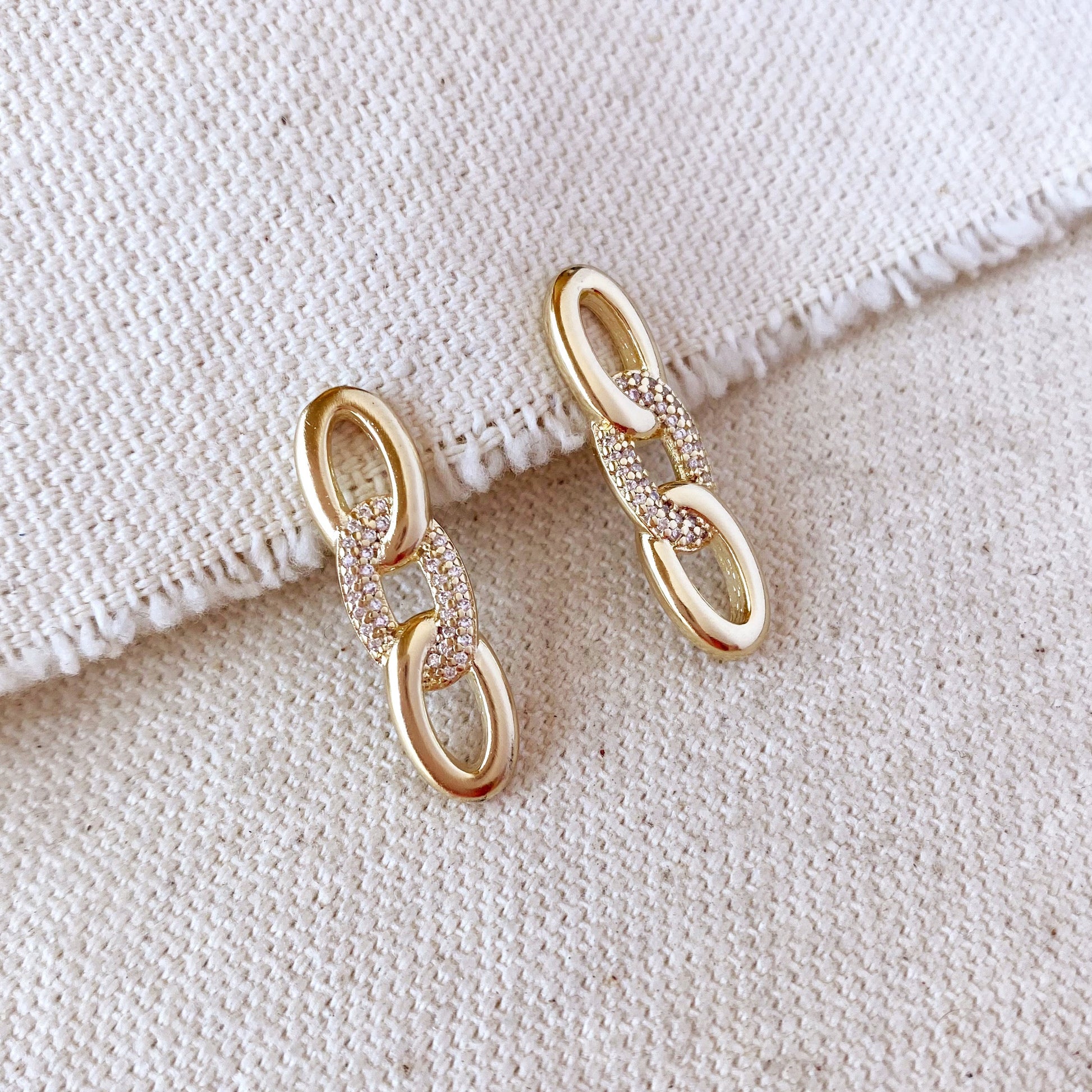 18k Gold Filled Faux Chain Drop earrings with micro pave Cubic Zirconia Stones.