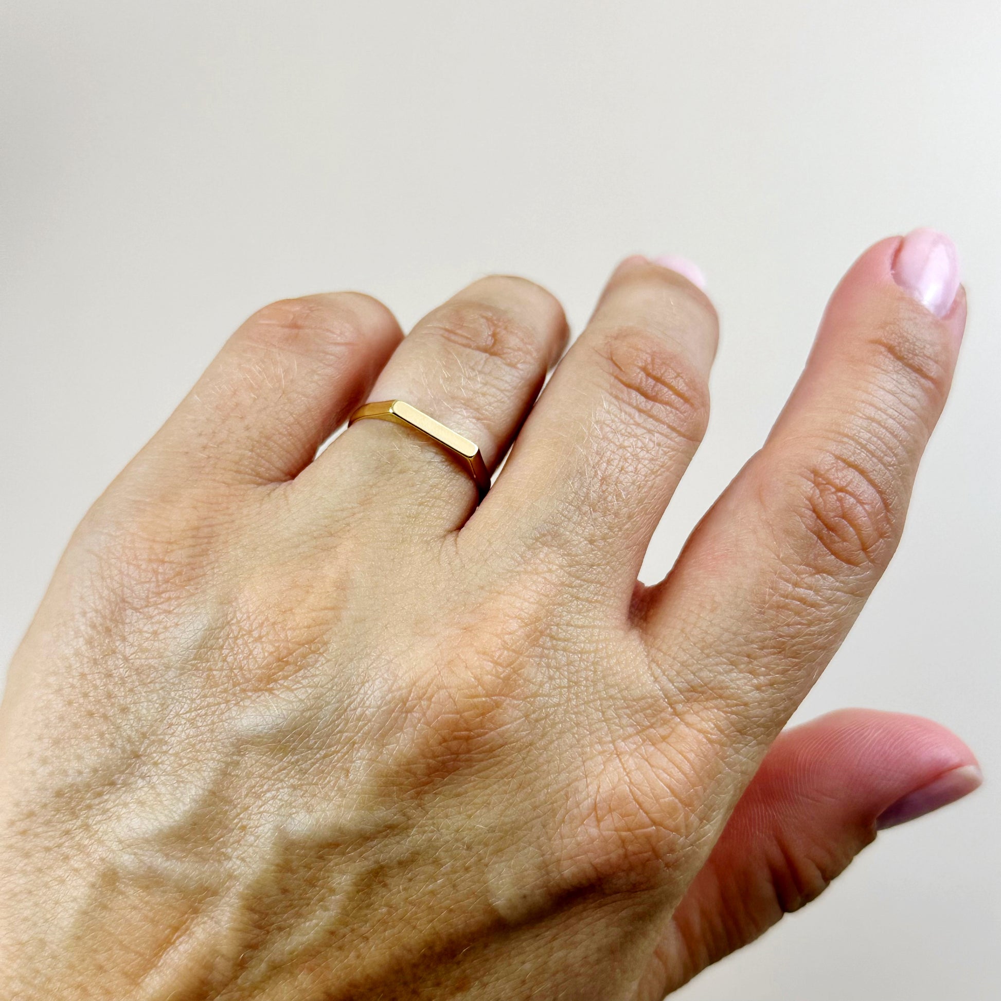 Keywords: flat top ring, gold filled ring, stackable rings, minimalist jewelry, women's rings, everyday rings, hypoallergenic jewelry, water resistant rings, handmade jewelry, Brazilian jewelry, geometric rings, modern rings, gift for her