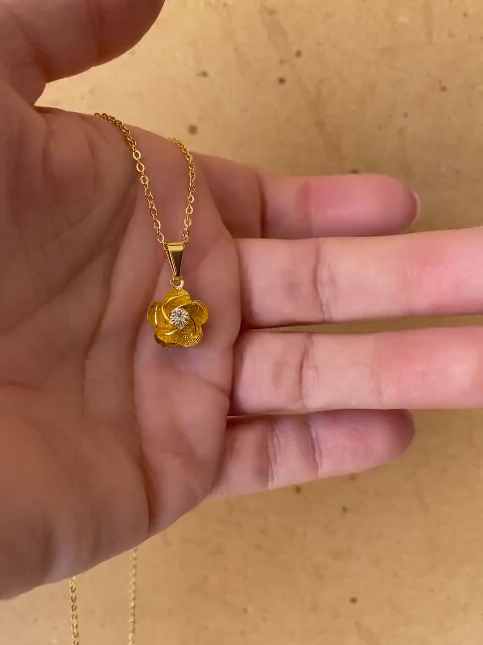 18k Gold Filled Flower Crystal Pendant or Necklace Set