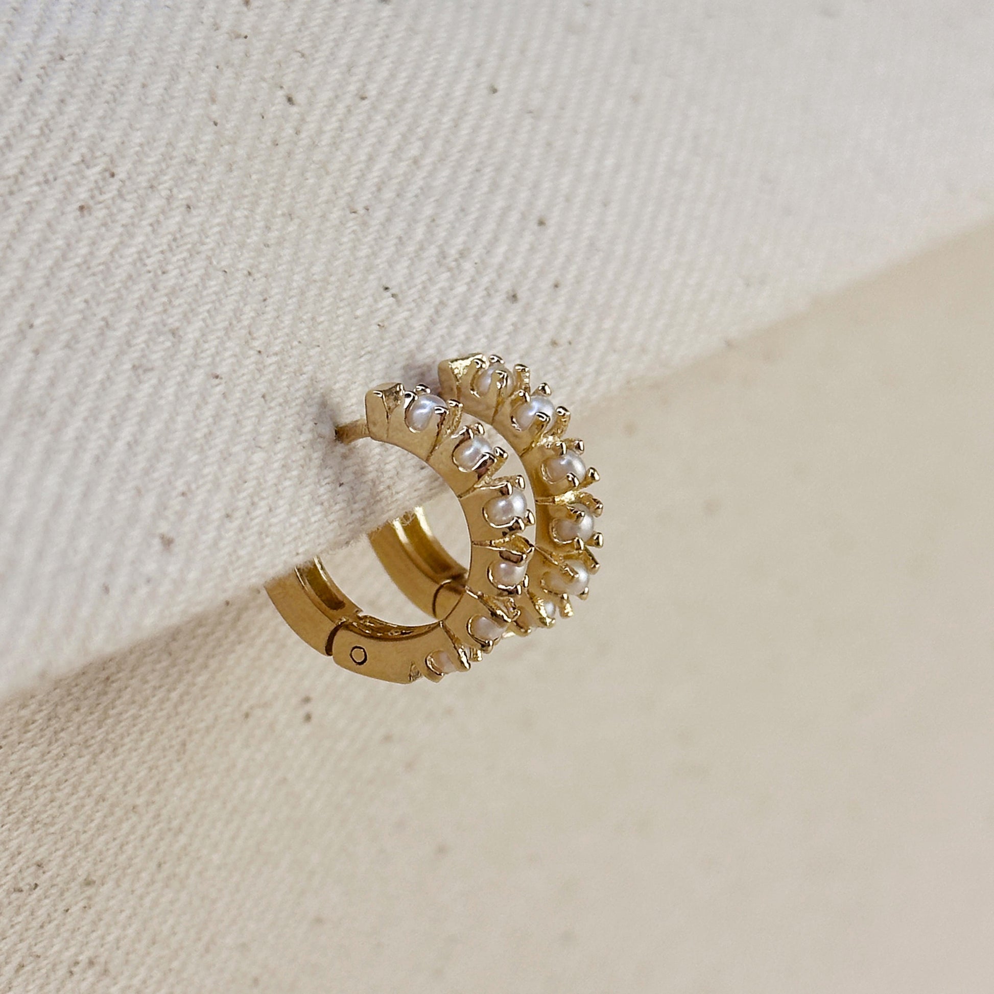 18k Gold Filled Fresh Water Pearl Hoop Earrings