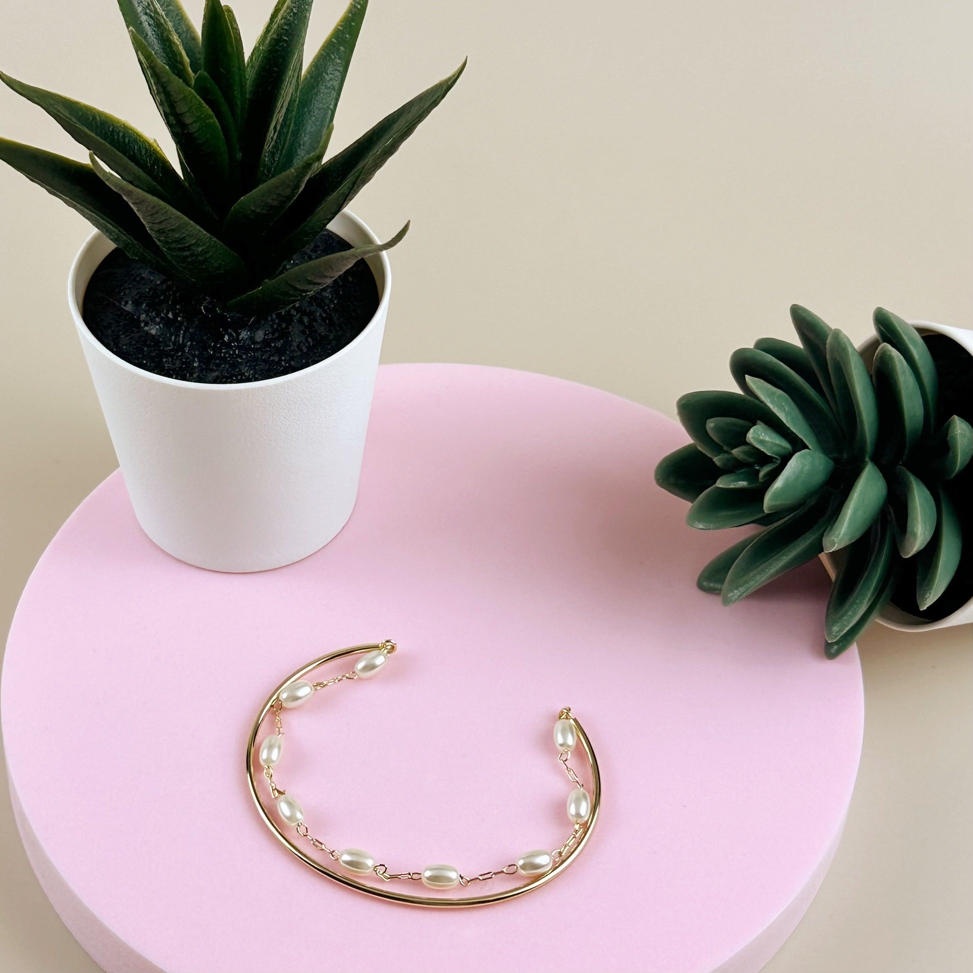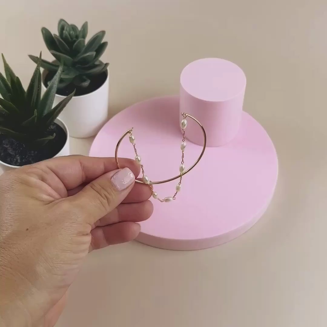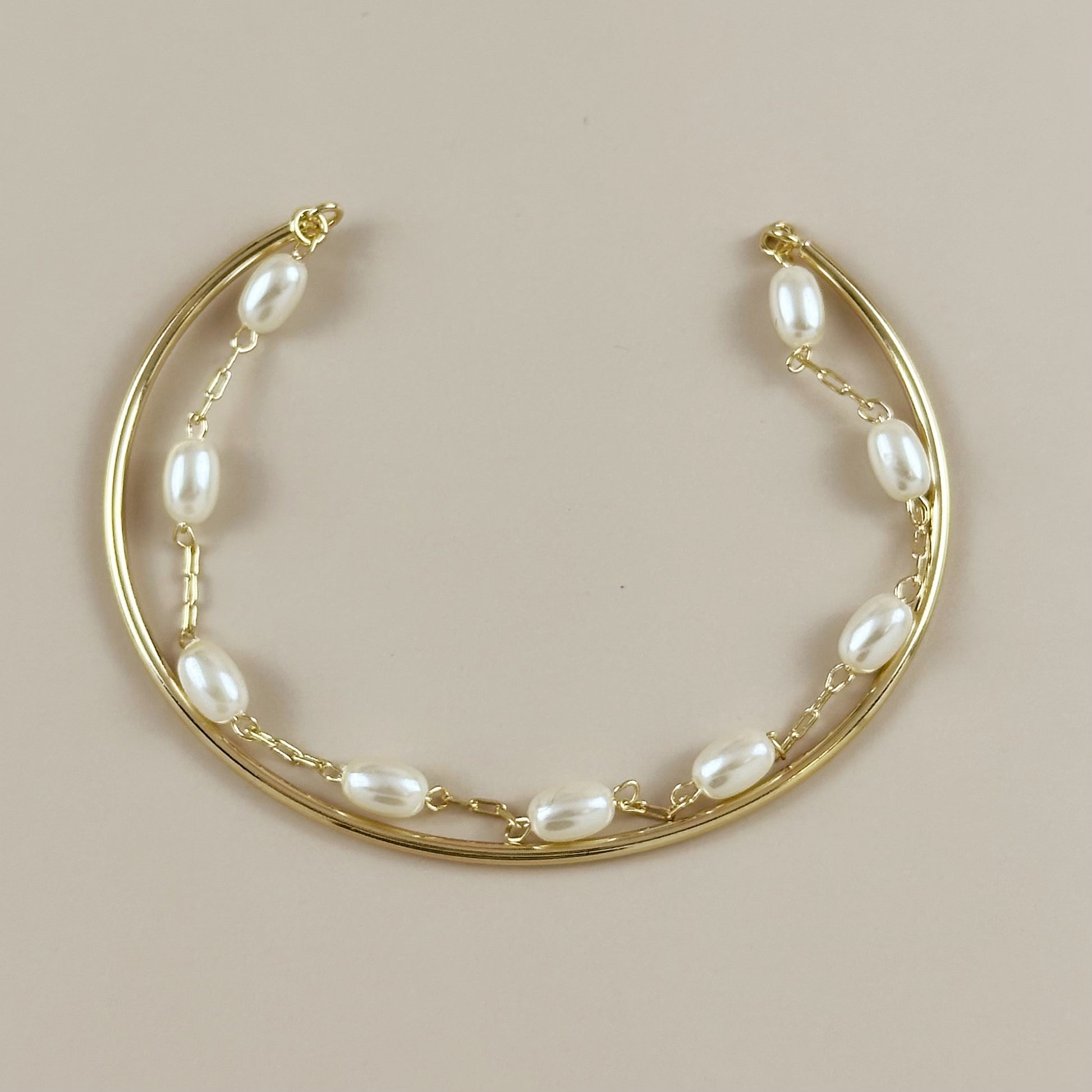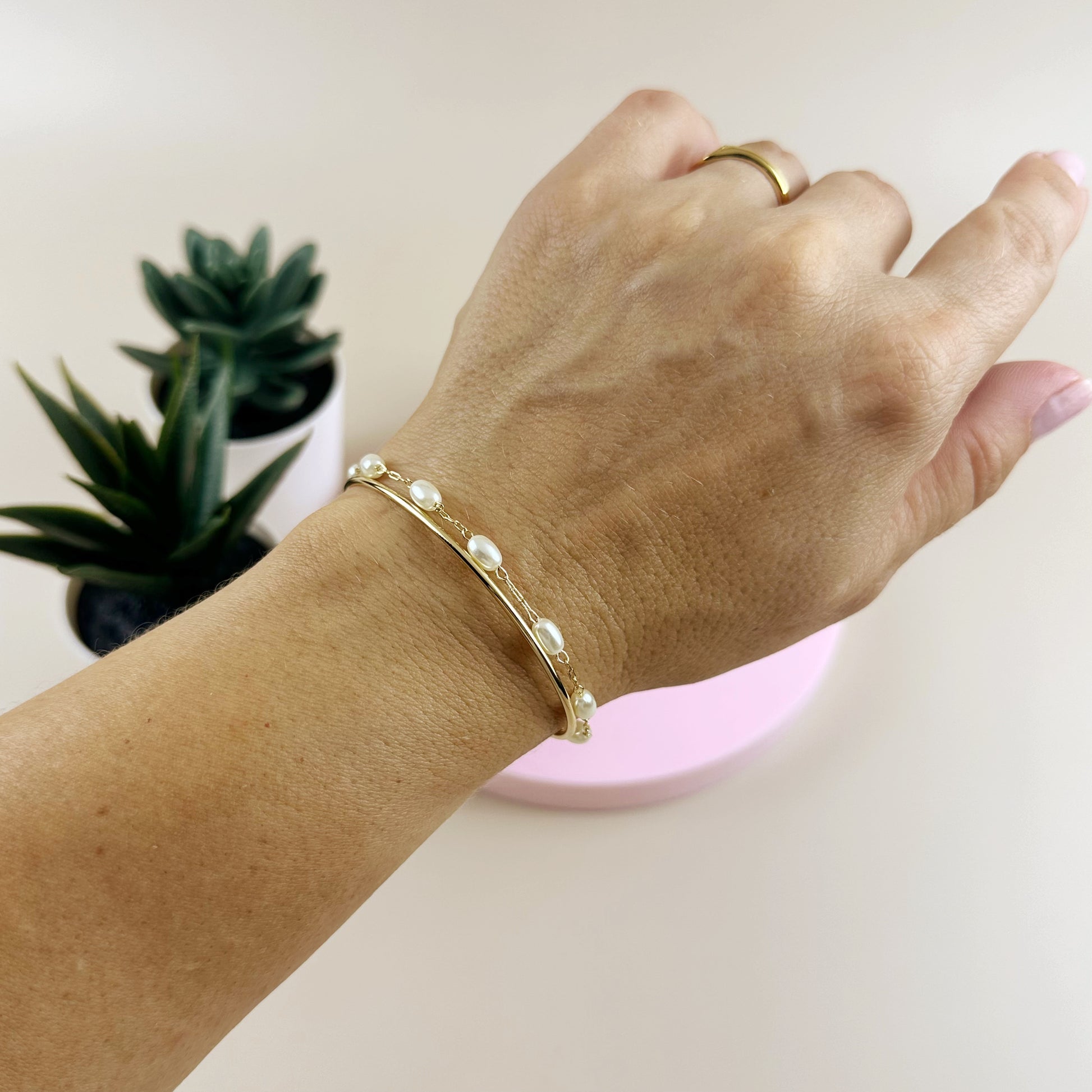 Keywords: gold filled pearl cuff bracelet, twisted cuff bracelet women, pearl bangle bracelet, 18k gold filled cuff, statement cuff bracelet, elliptical pearl jewelry, open bangle bracelet, hypoallergenic cuff bracelet, handmade Brazil jewelry, wedding cuff bracelet