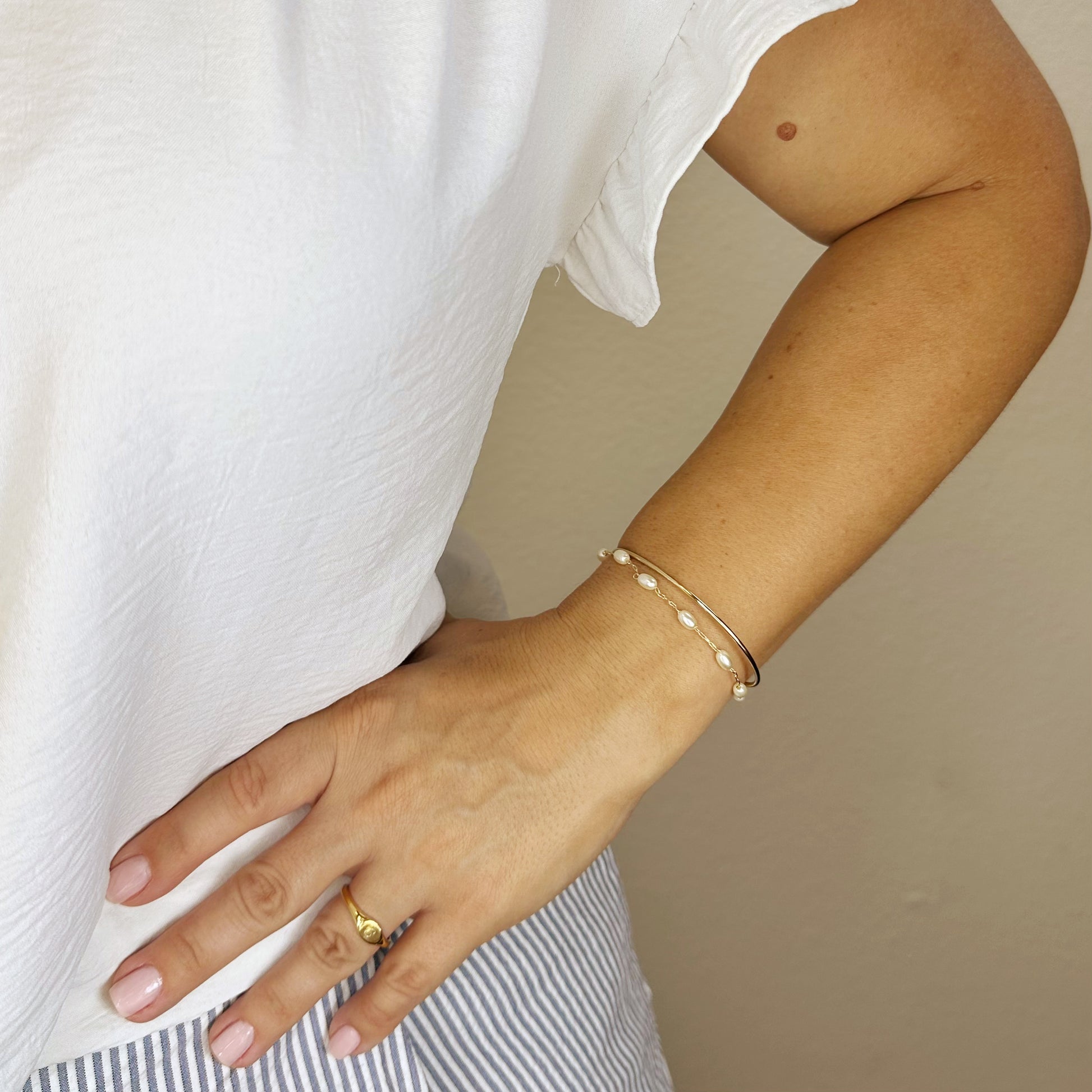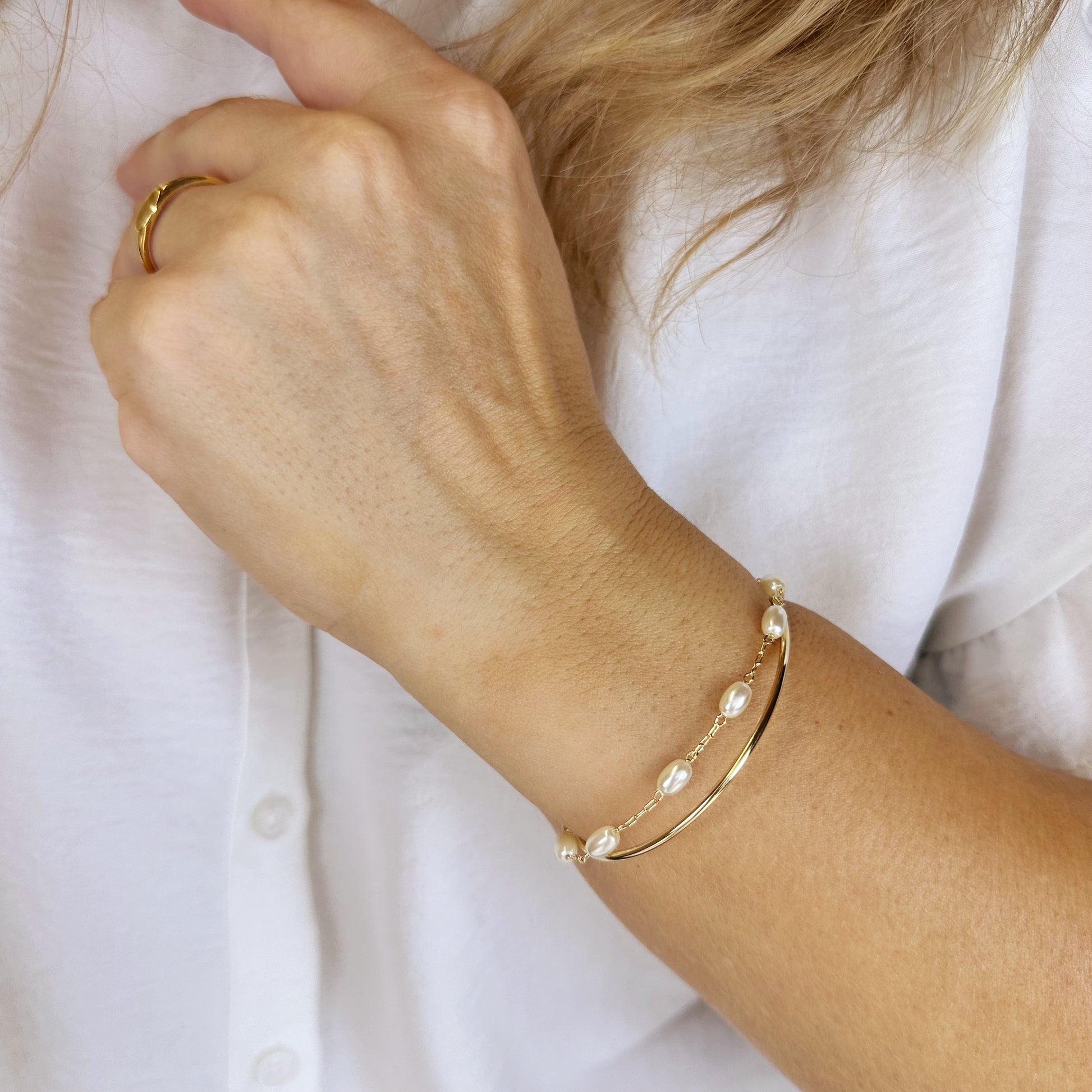 Pearl Cuff Bracelet for Women - Twisted Open Bangle with Elliptical Pearls