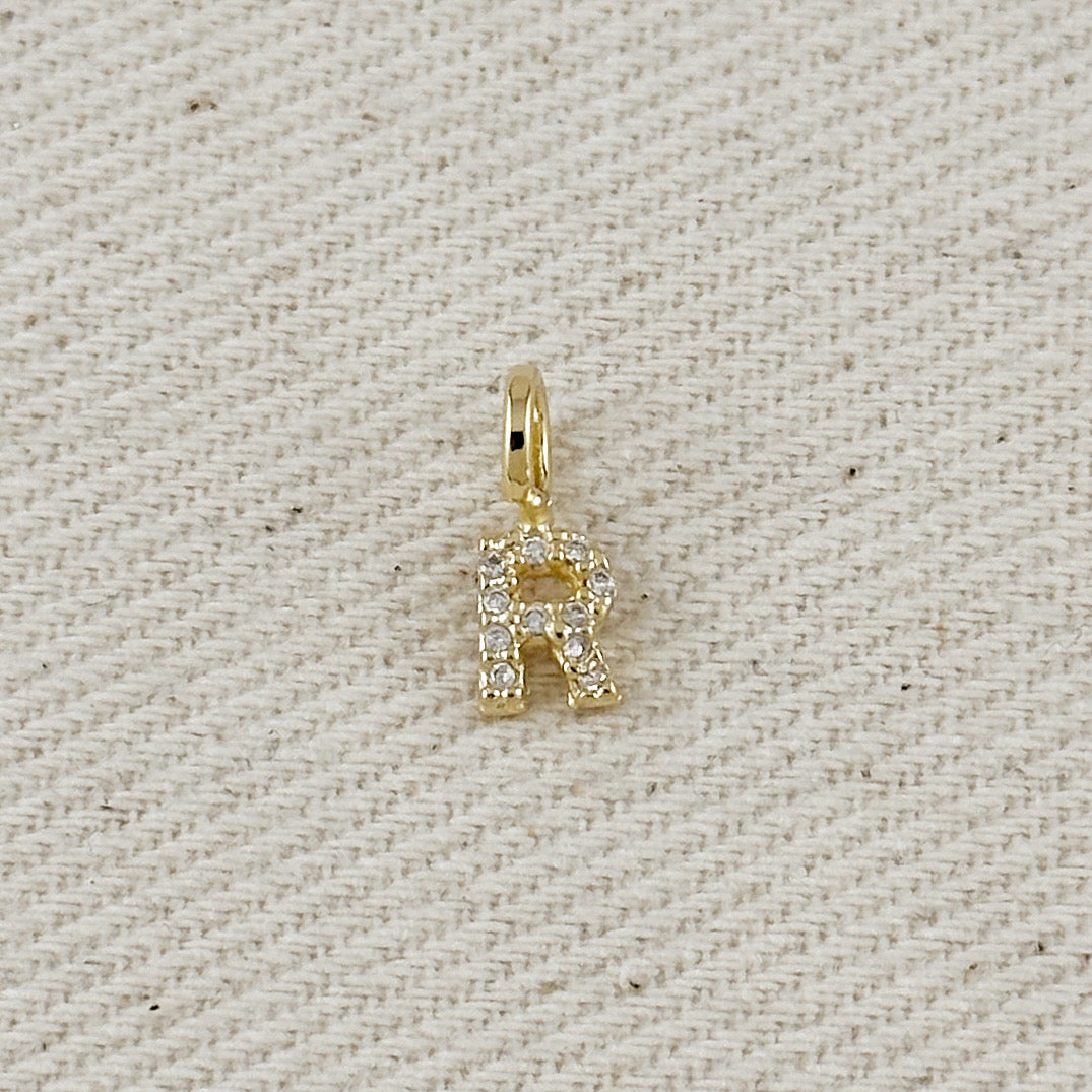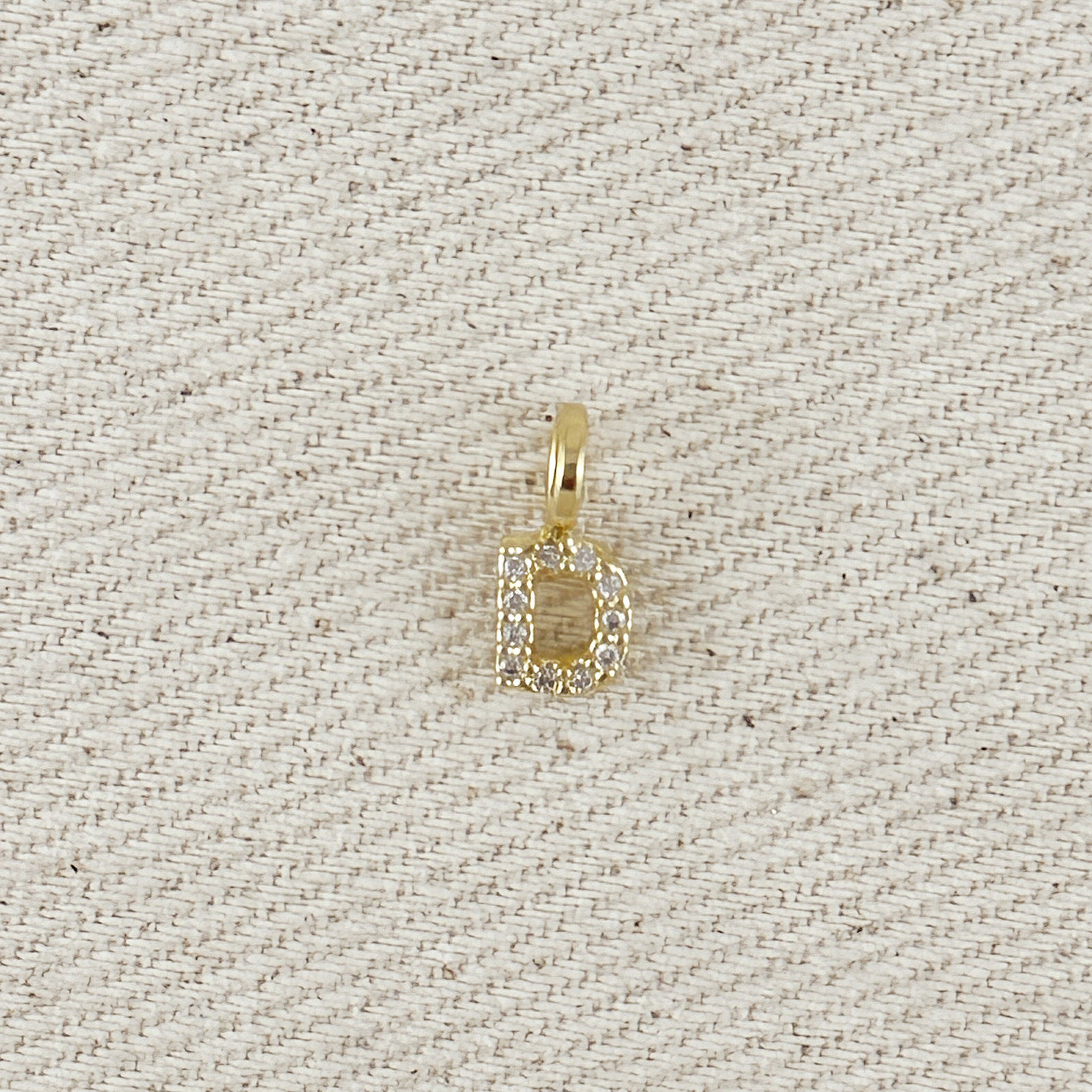 Add a personal touch to your jewelry with our delicate 18K Gold Filled Initial Letter Charm, featuring sparkling micro cubic zirconia stones. Each letter is meticulously crafted with tiny CZ stones that catch the light beautifully, creating a sophisticated sparkle effect. The premium 18K gold-filled setting ensures lasting durability while maintaining its luxurious appearance. Perfect for adding to necklaces, bracelets, or our carabiner clasp chains, these dainty initial charms allow you to create meaningful combinations or wear your own initial as a subtle statement piece. The perfect way to personalize your jewelry collection or create a thoughtful, customized gift.