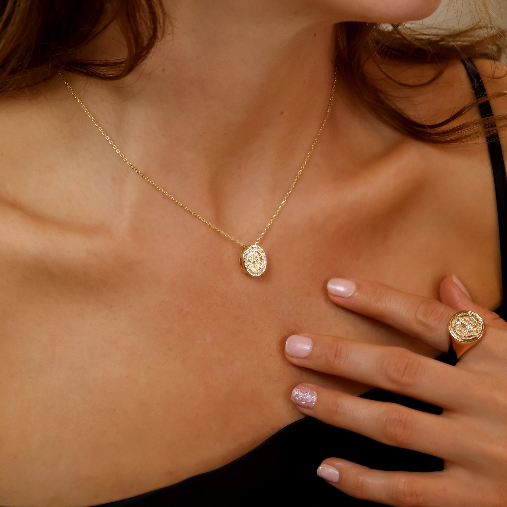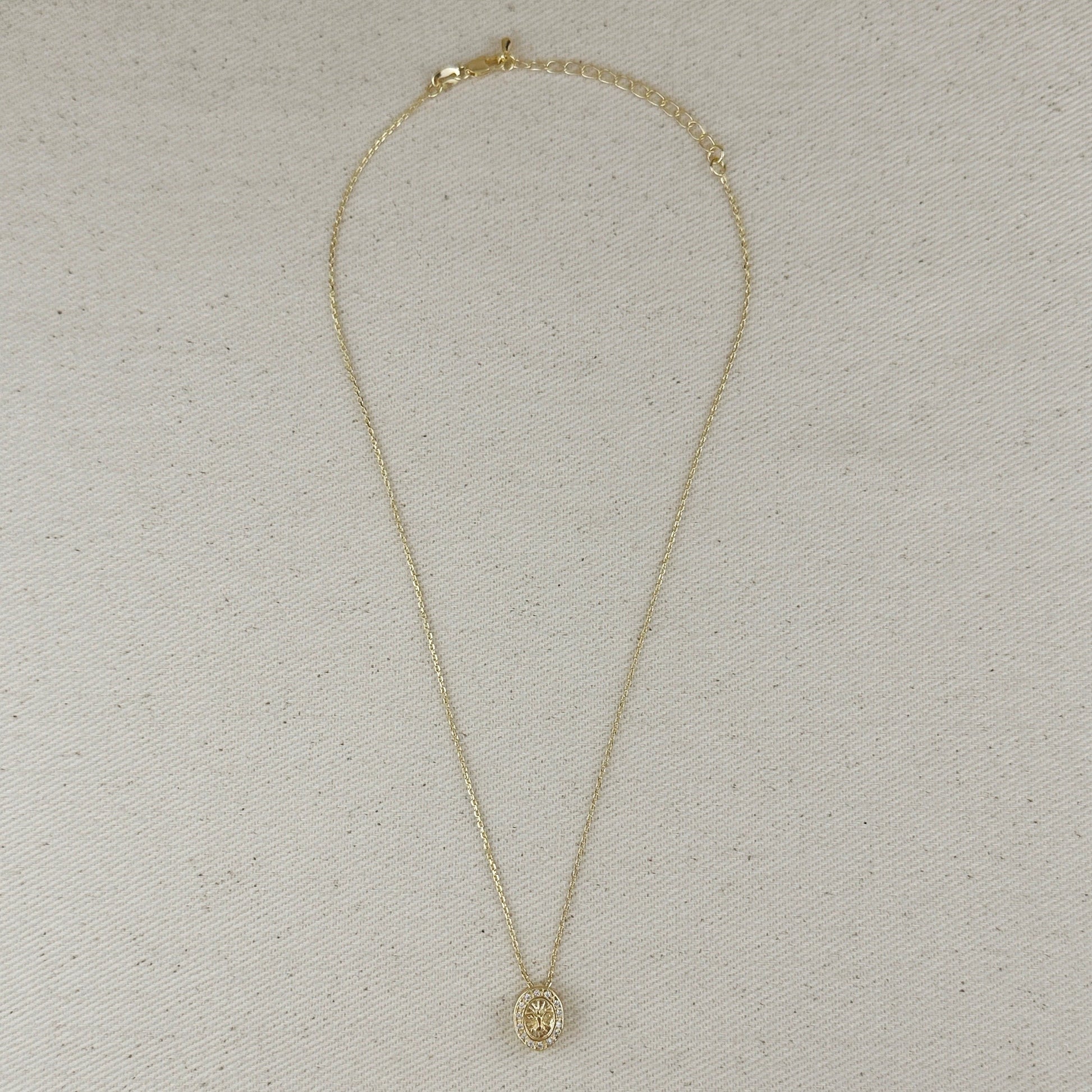 Embrace peace and elegance with our 18k Gold Filled Mini Dove CZ Necklace. This delicate piece features an oval-shaped charm adorned with a graceful dove silhouette, symbolizing hope and serenity. The charm is beautifully encircled by sparkling cubic zirconia stones, adding a touch of glamour to the meaningful design.