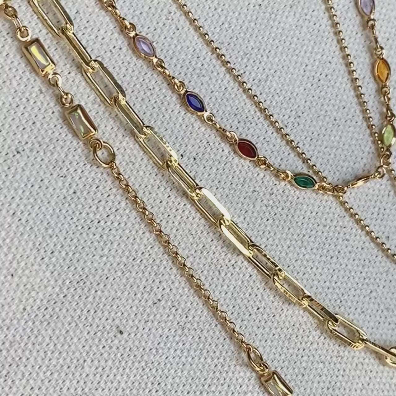 18k gold filled layers of chain and multicolor flower necklace. We are manufacturers of high quality jewelry. Buy with confidence.