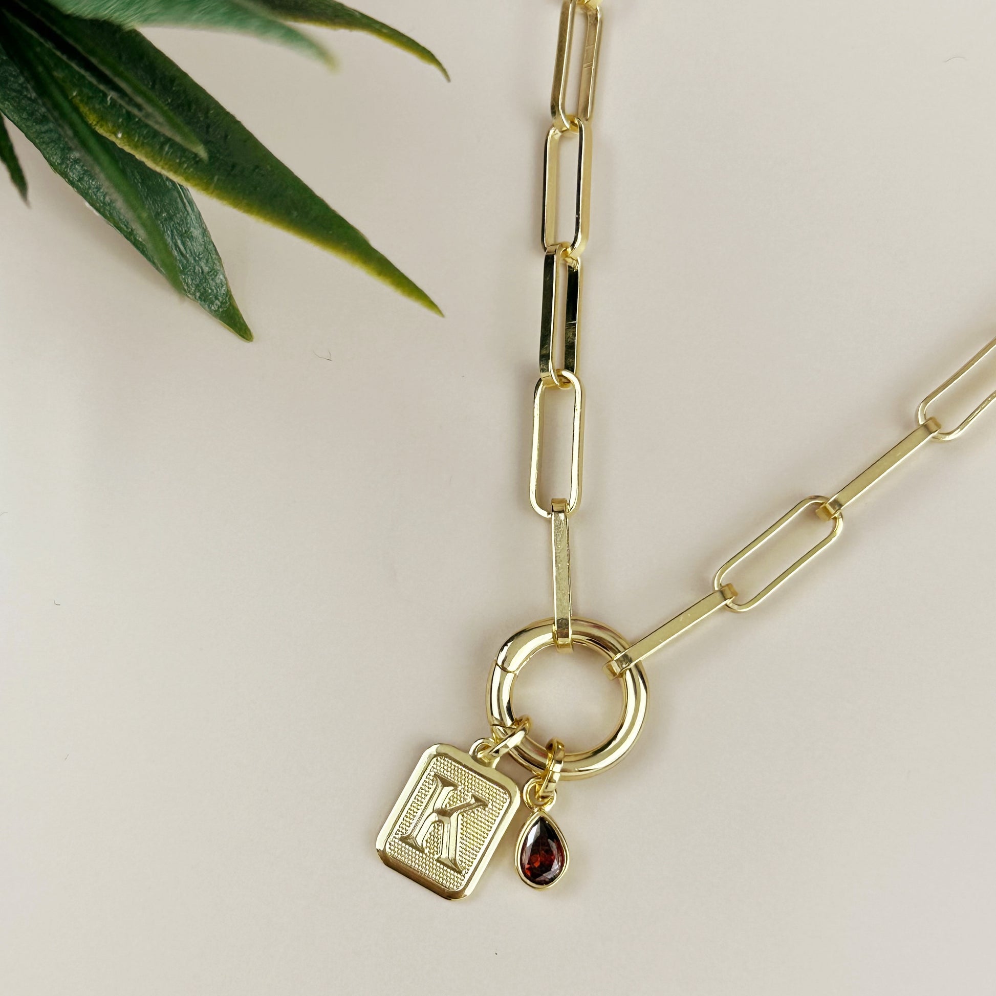 Keywords: paperclip chain necklace, 18k gold filled chain, carabiner necklace, charm ready chain, chunky paperclip chain, trendy chain necklace, layering necklace, customizable necklace, statement chain, modern chain jewelry, functional jewelry, paperclip link chain