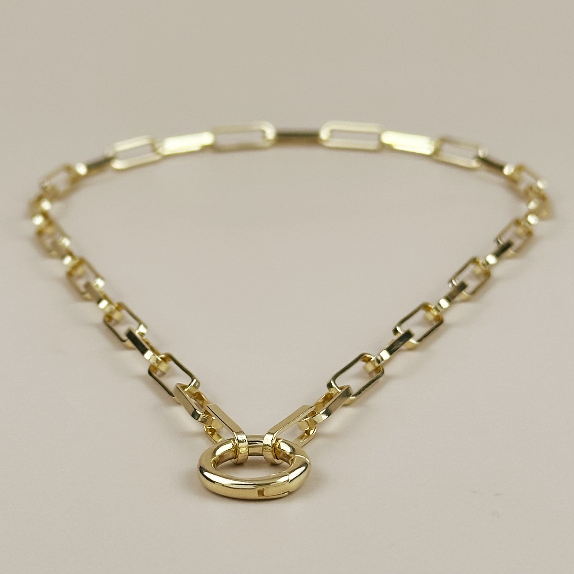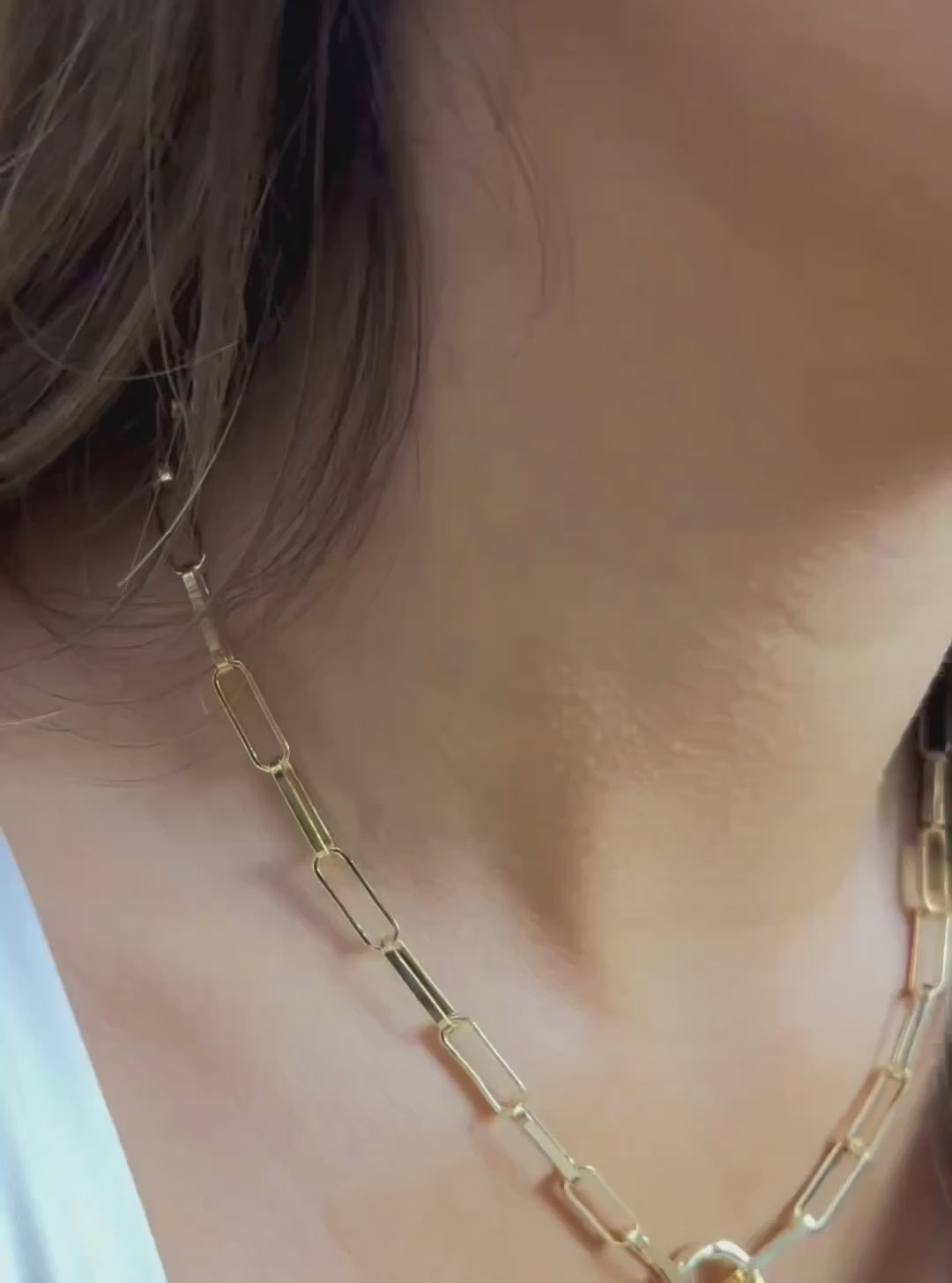 Create your perfect layered look with this trendy 18k gold filled paperclip chain necklace featuring a functional 15mm carabiner clasp - the ultimate base for charms, pendants, and custom styling.