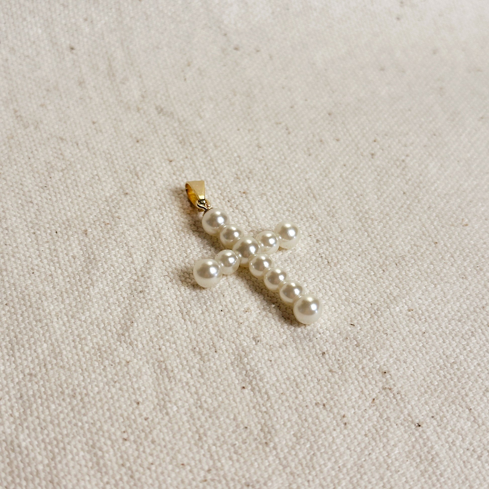 18k Gold Filled Pearl Cross Pendant