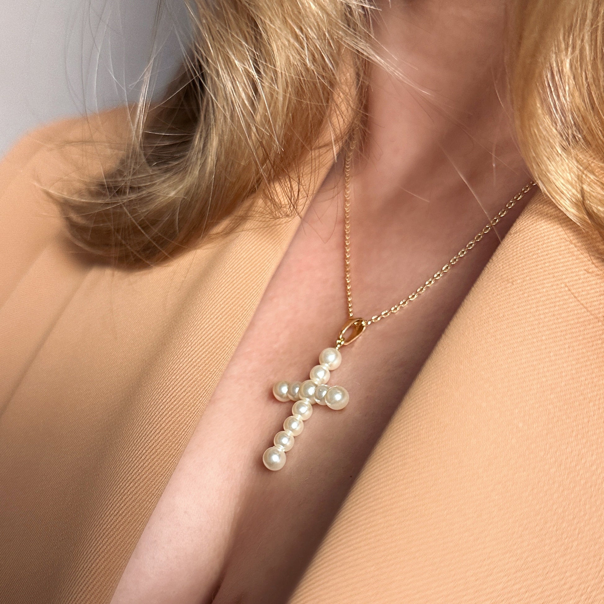Add a touch of faith and fashion to your look with our 18k Gold Filled Pearl Cross Pendant. A statement piece that embodies elegance and spirituality. Perfect for everyday wear or special occasions.
