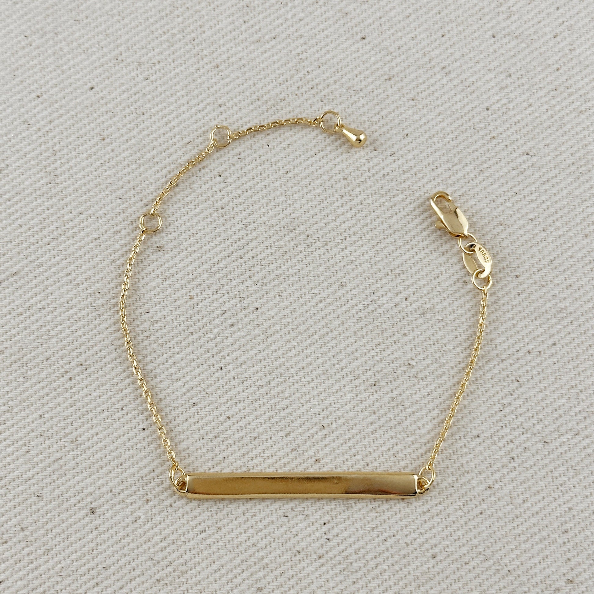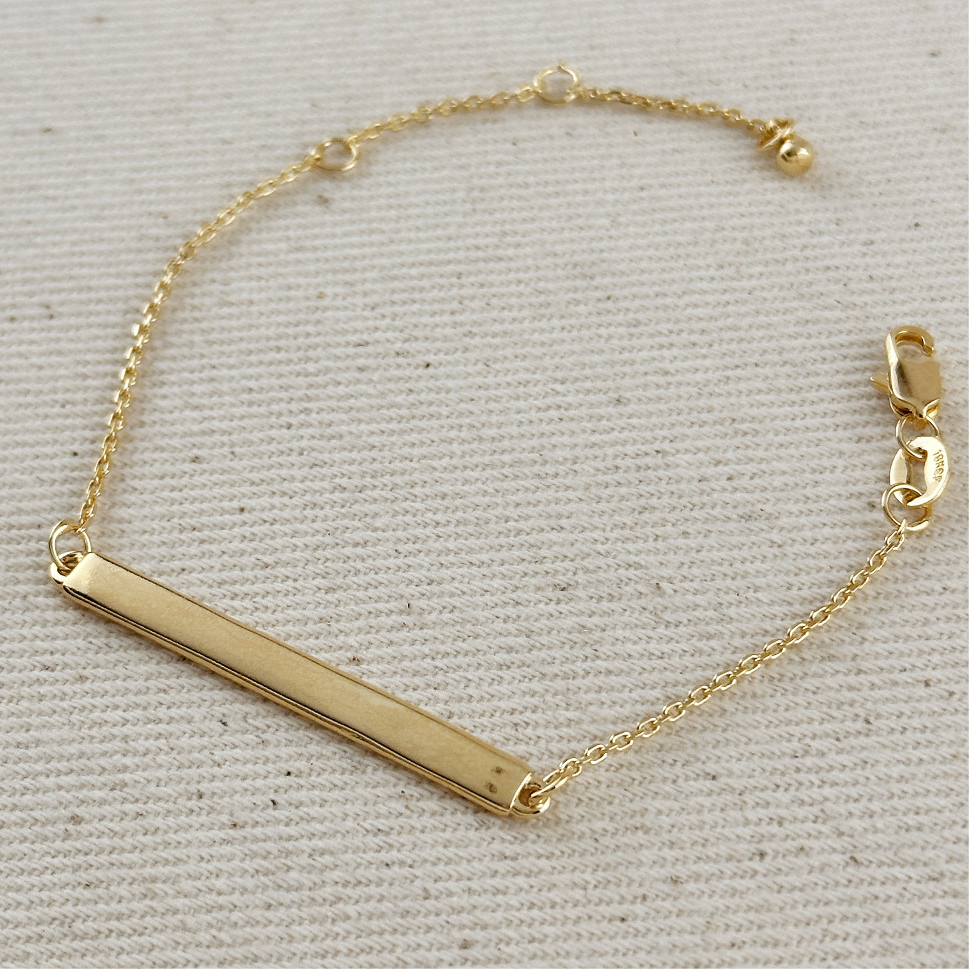 This elegant bracelet features a sleek polished bar. The minimalist design centers around the lustrous bar element, which catches light beautifully with its smooth, high-polish finish.
