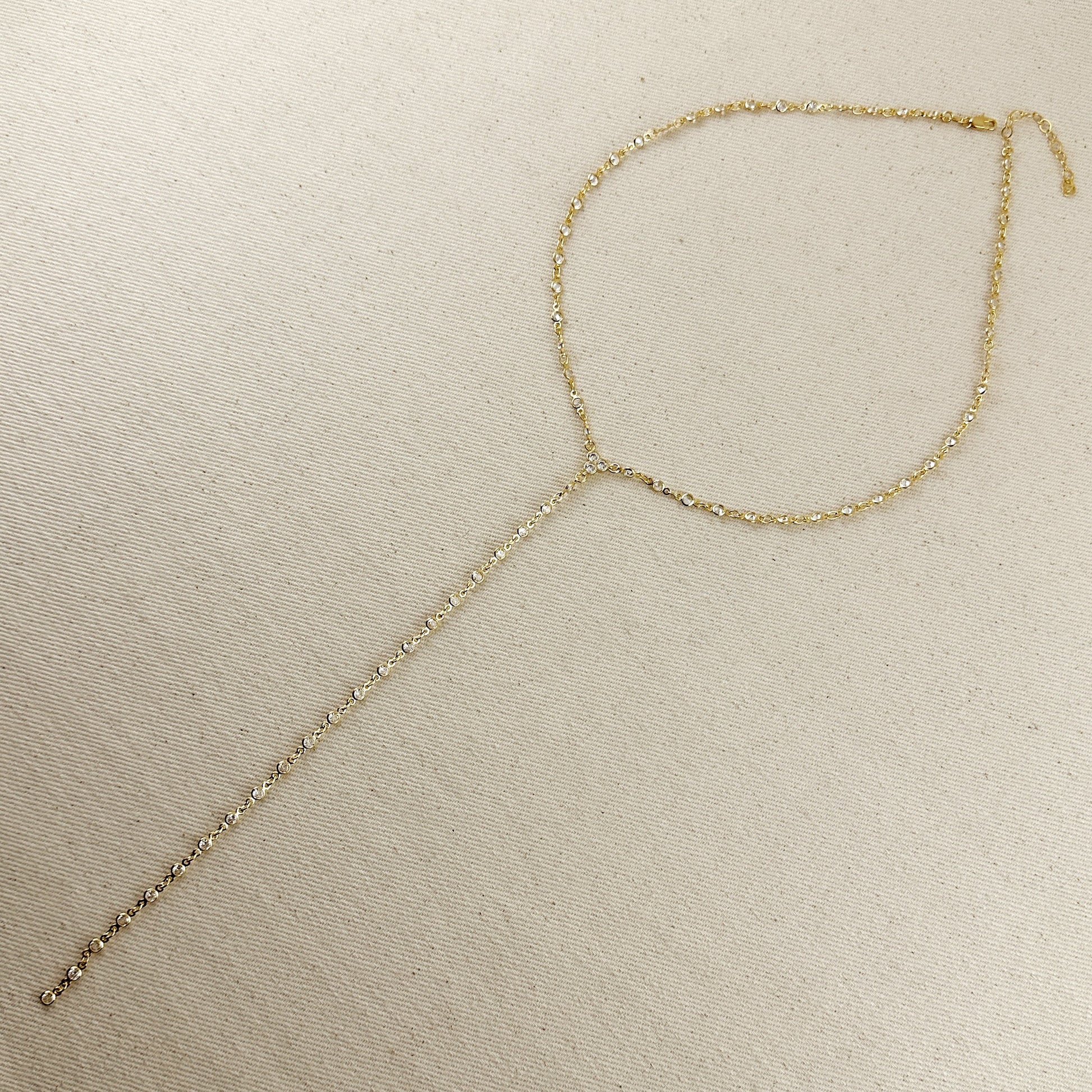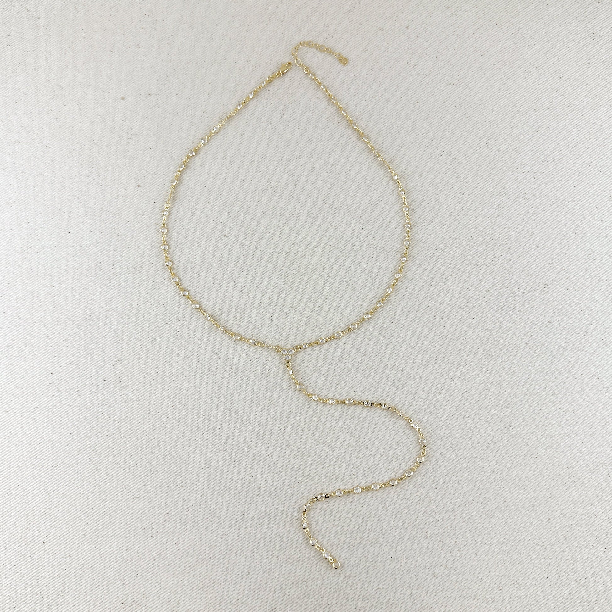 18k Gold Filled Round Bezel CZ Lariat Necklace