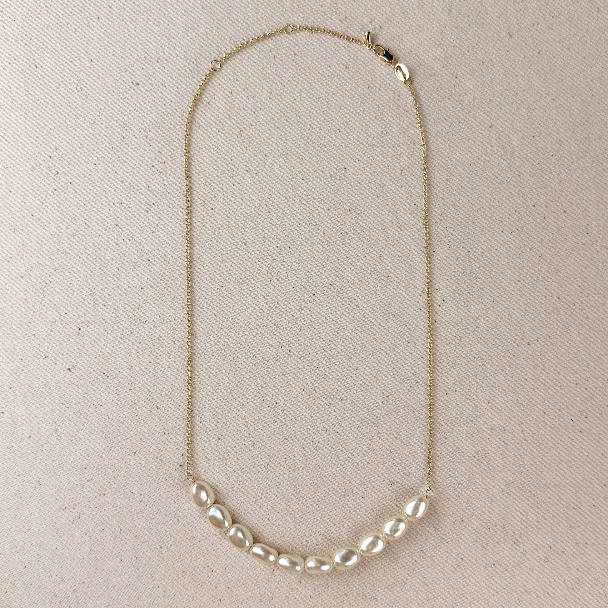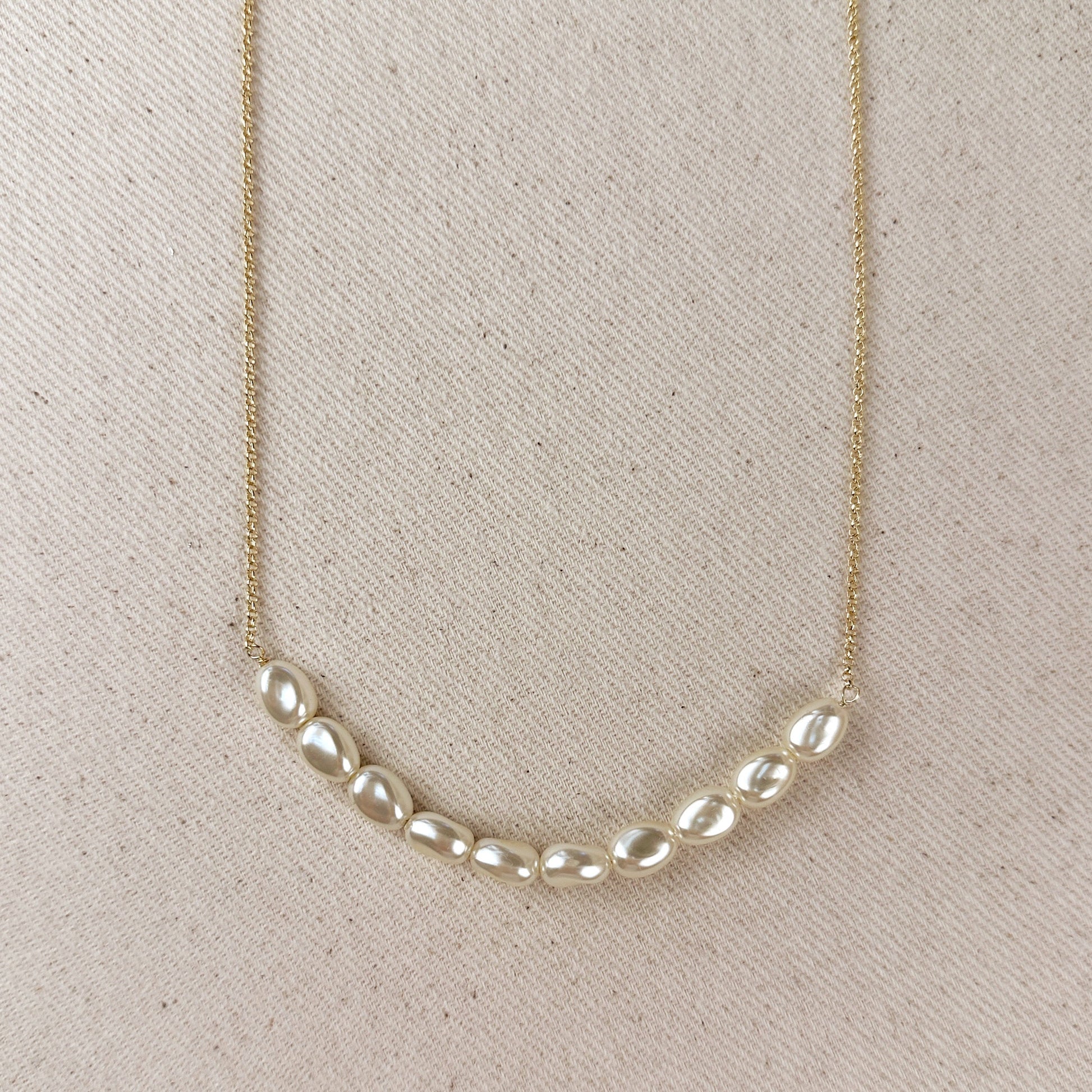 Indulge in timeless elegance with our 18k Gold Filled Row of Baroque Pearls Necklace. The trendy design adds a touch of sophistication to any outfit, making you stand out in style. Experience the luxurious beauty of baroque pearls wrapped in a gorgeous gold finish. Elevate your look today!