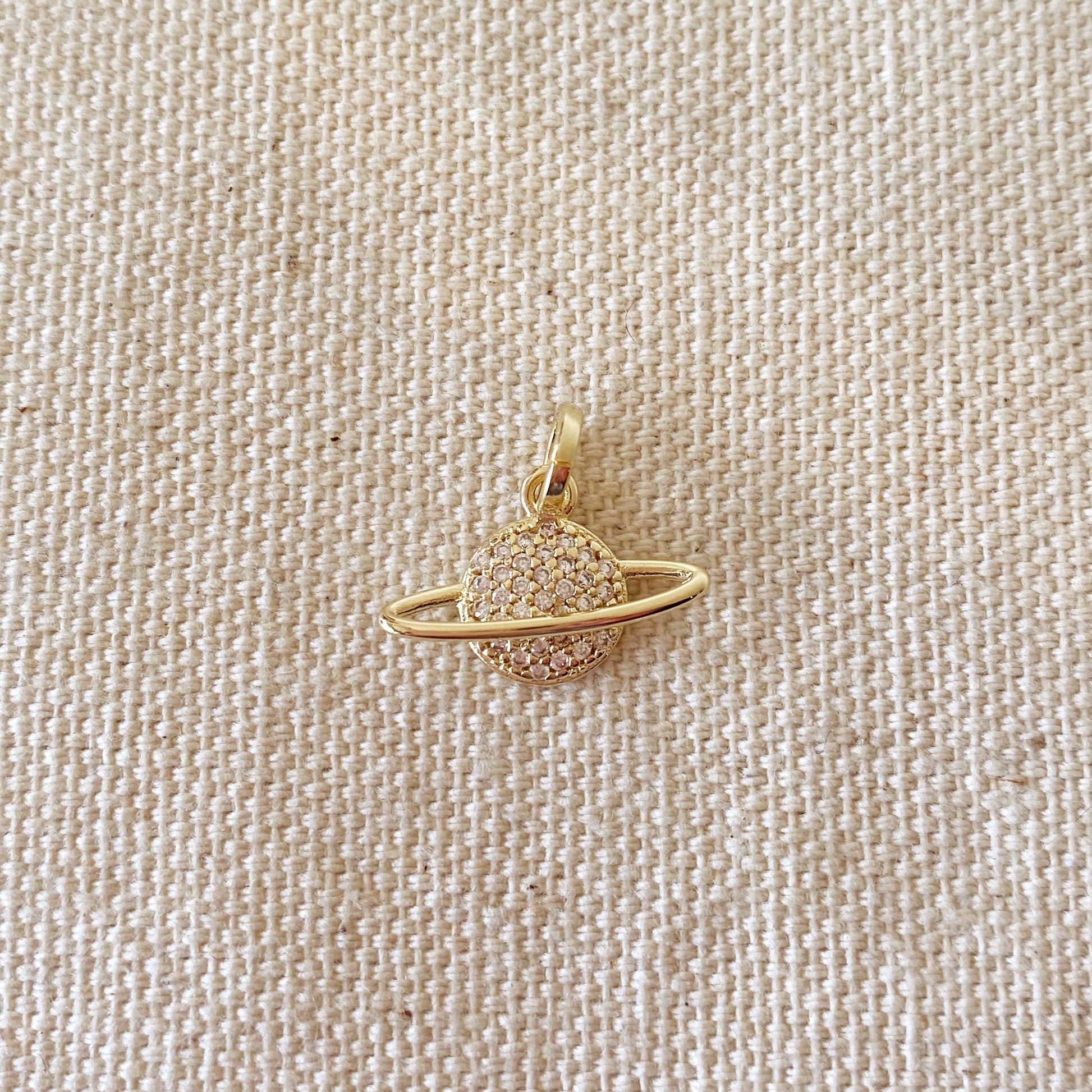 18k Gold Filled Saturn Pendant With Cubic Zirconia Stones