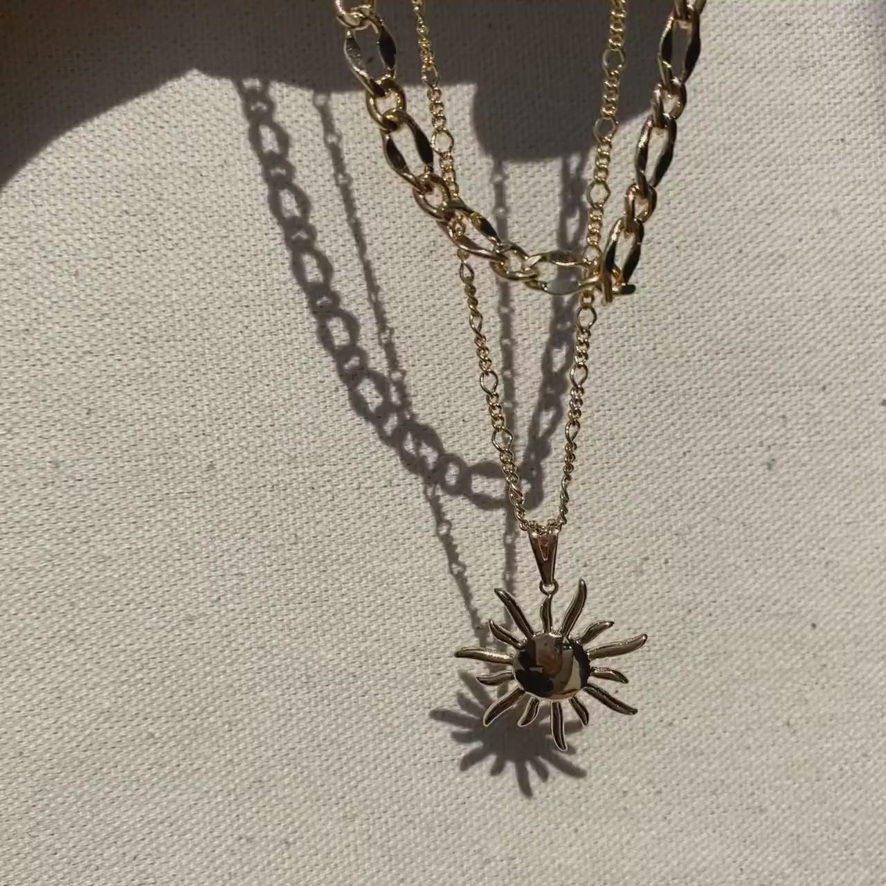 18k Gold Filled Sun Pendant Necklace and Chains Layers. Wholesale prices and incomparable quality. Gorgeous link chains made to last. Very durable water resistant you can wear at the beach, pool or taking shower.