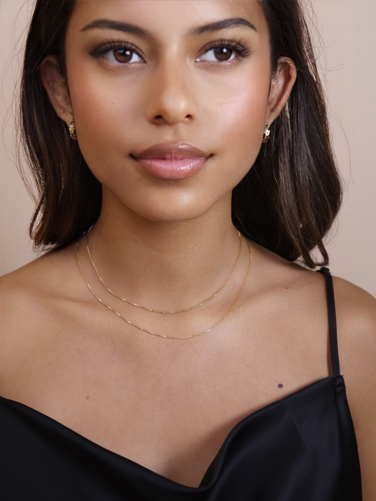 Box Chain Necklace for Women - 1mm Delicate Gold Chain