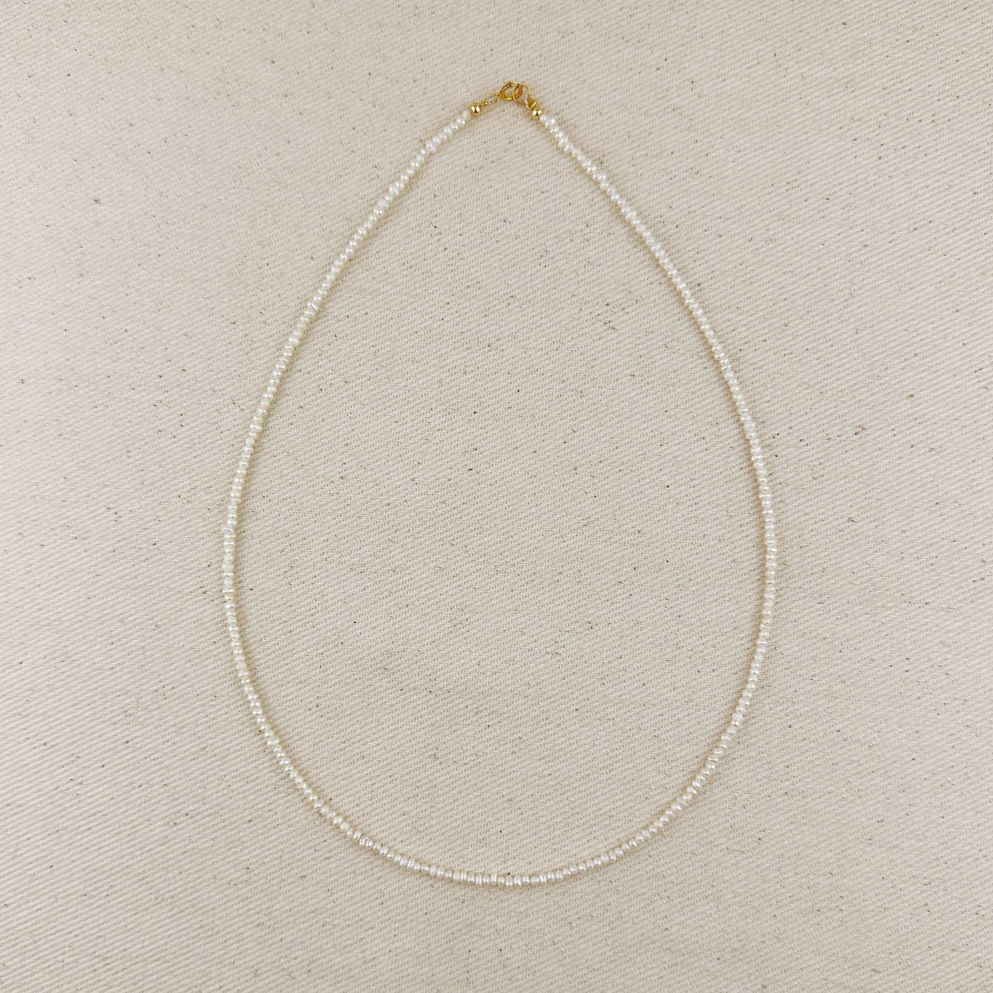 Elegance meets delicacy in this exquisite 9k gold micro freshwater pearl necklace. Featuring a strand of lustrous, tiny freshwater pearls carefully selected for their uniform size and shape, this necklace offers a subtle yet sophisticated look. The warm glow of 9k gold clasps and findings complements the pearls' natural iridescence, creating a versatile piece suitable for both everyday wear and special occasions. Perfect for those who appreciate understated luxury, this necklace is a timeless addition to any jewelry collection.