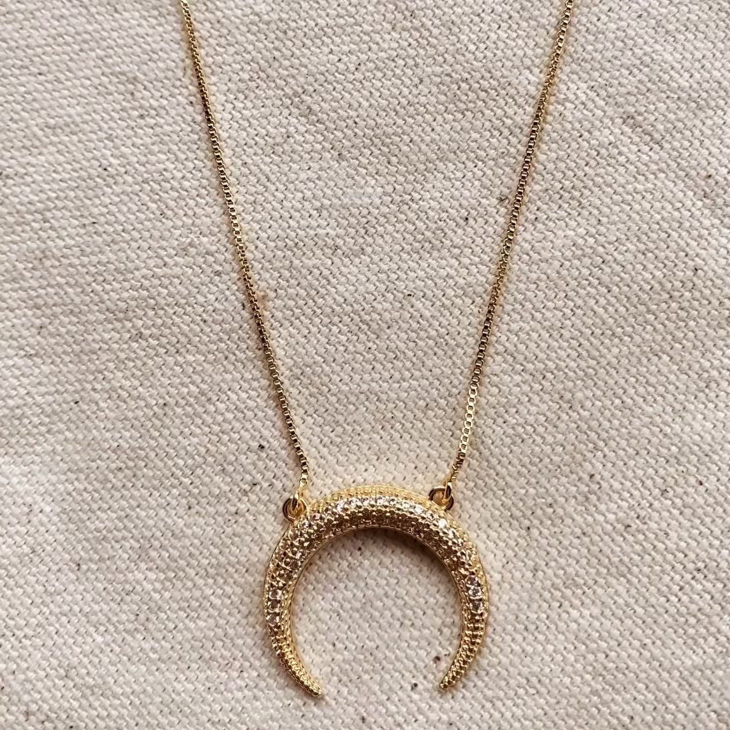 Cubic Zirconia 18k Gold Filled Crescent Moon Necklace