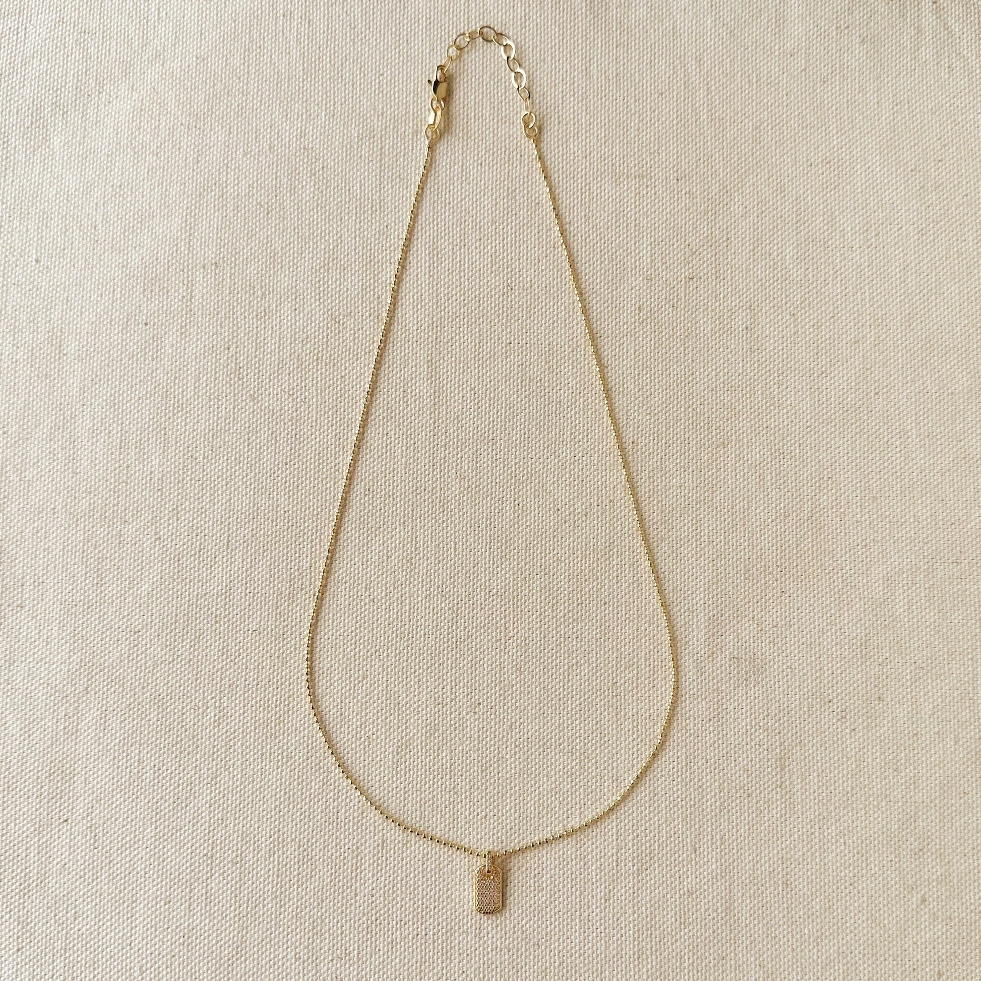 Tags: mini dog tag necklace, 18k gold filled necklace, minimalist pendant necklace, layering necklace, dainty dog tag, hypoallergenic necklace, water resistant jewelry, everyday necklace, personalized pendant, handcrafted jewelry