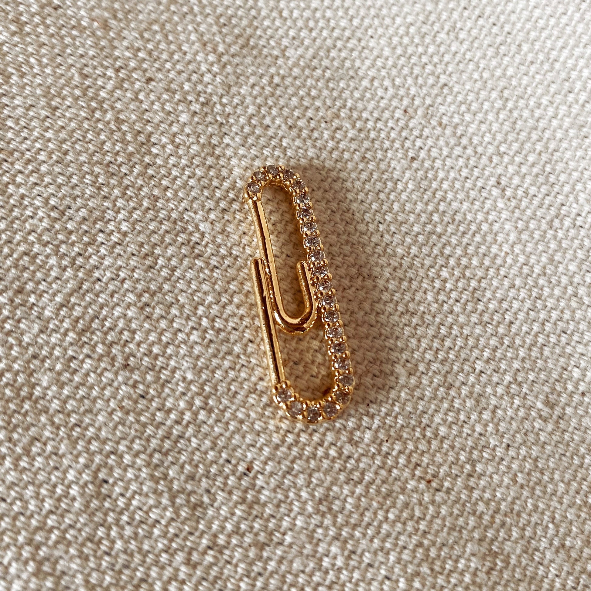 18k Gold Filled Paper Clip Charm Featuring Cubic Zirconia Accents