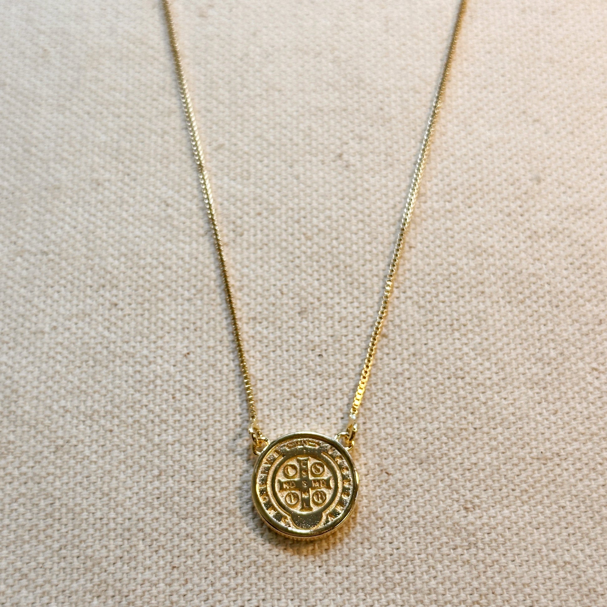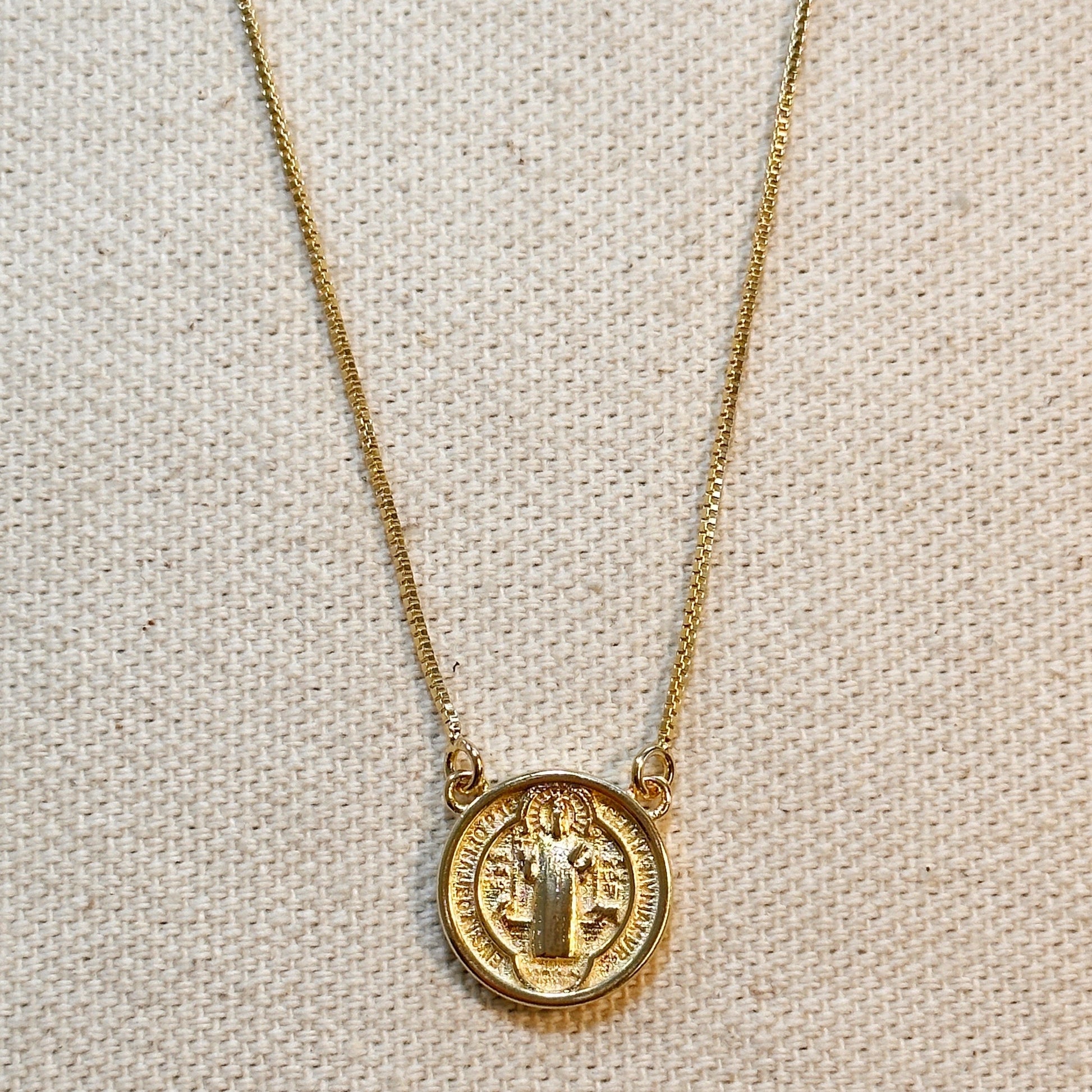 This Saint Benedict double-sided medal necklace will be sure to impress with its religious symbolism and versatile design. Its sophisticated and beautiful look makes it the perfect accessory to add an elegant touch to any outfit.