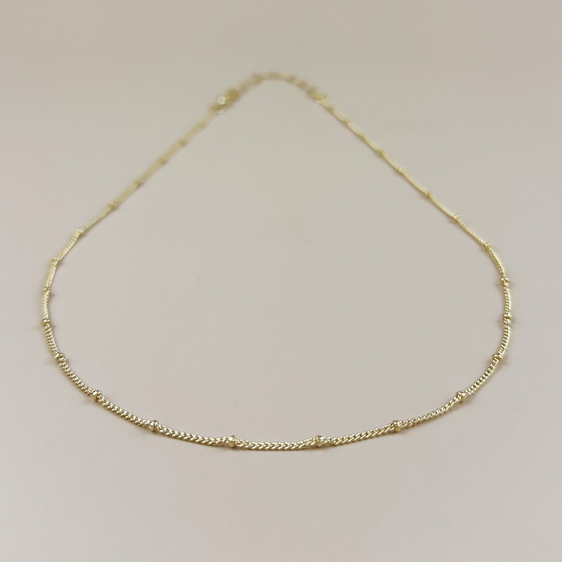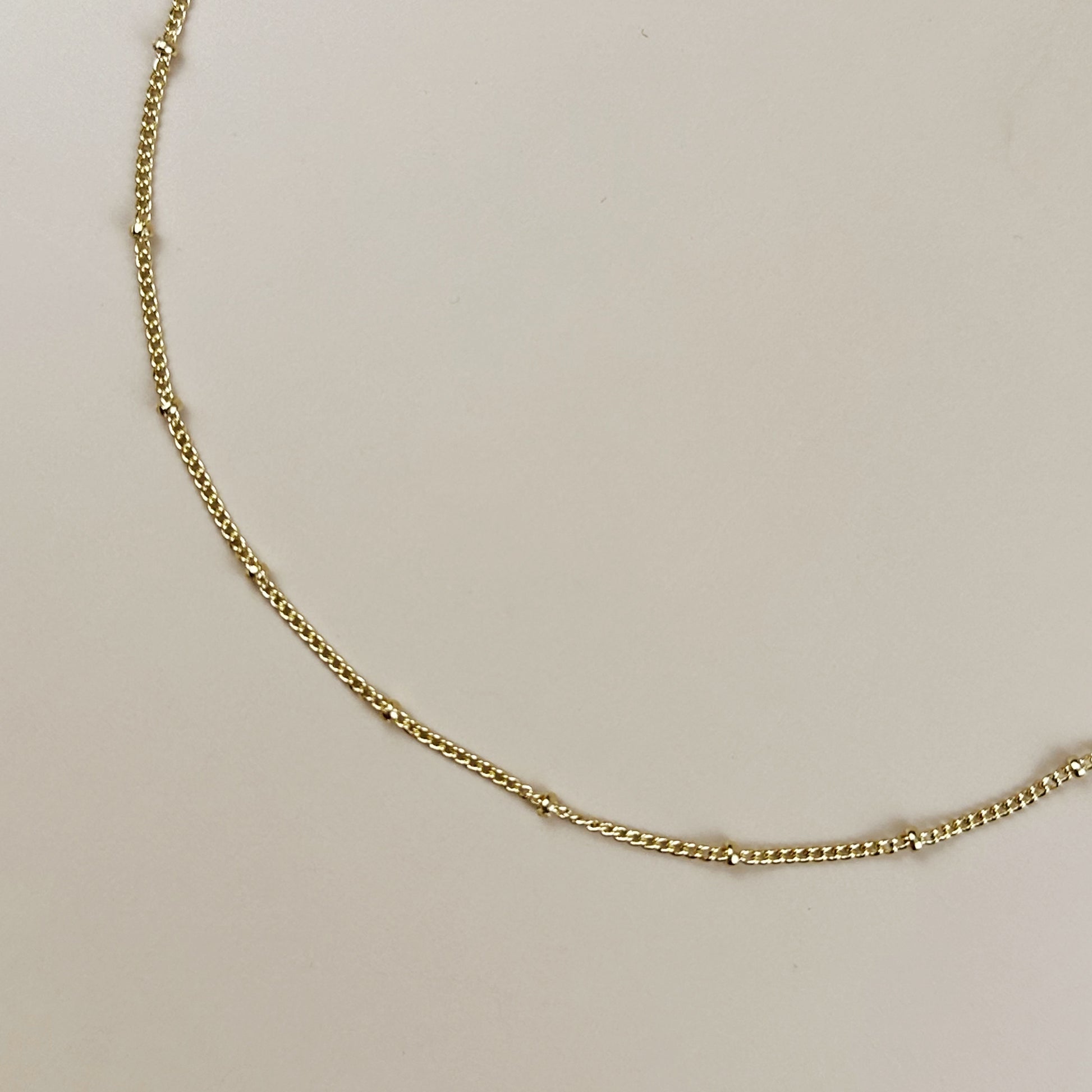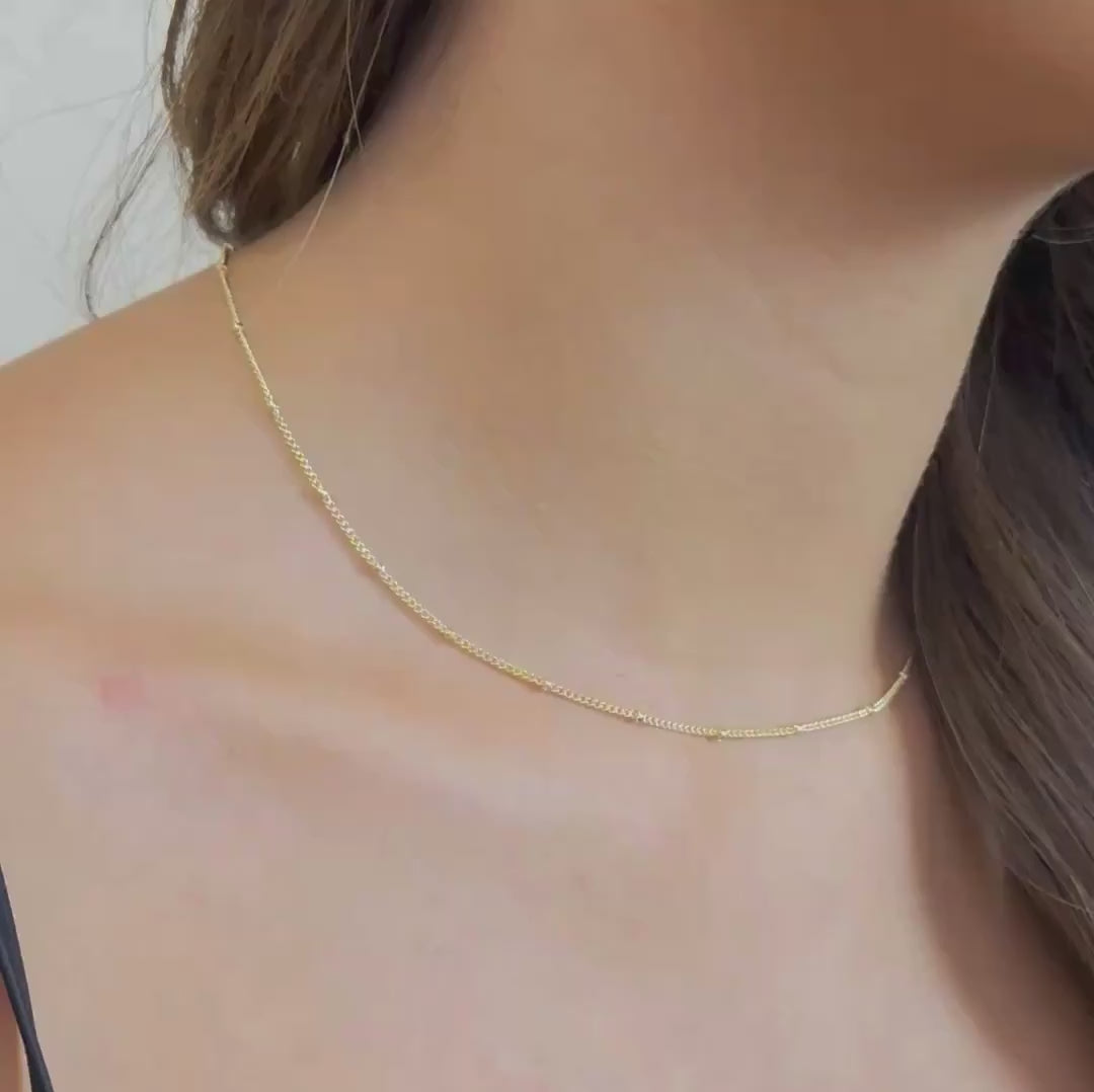 Transform your jewelry collection with this stunning 18k gold filled satellite chain necklace. This ultra-delicate 1mm chain features the perfect combination of sleek curb chain links adorned with tiny beads, creating a sophisticated texture that catches the light beautifully.