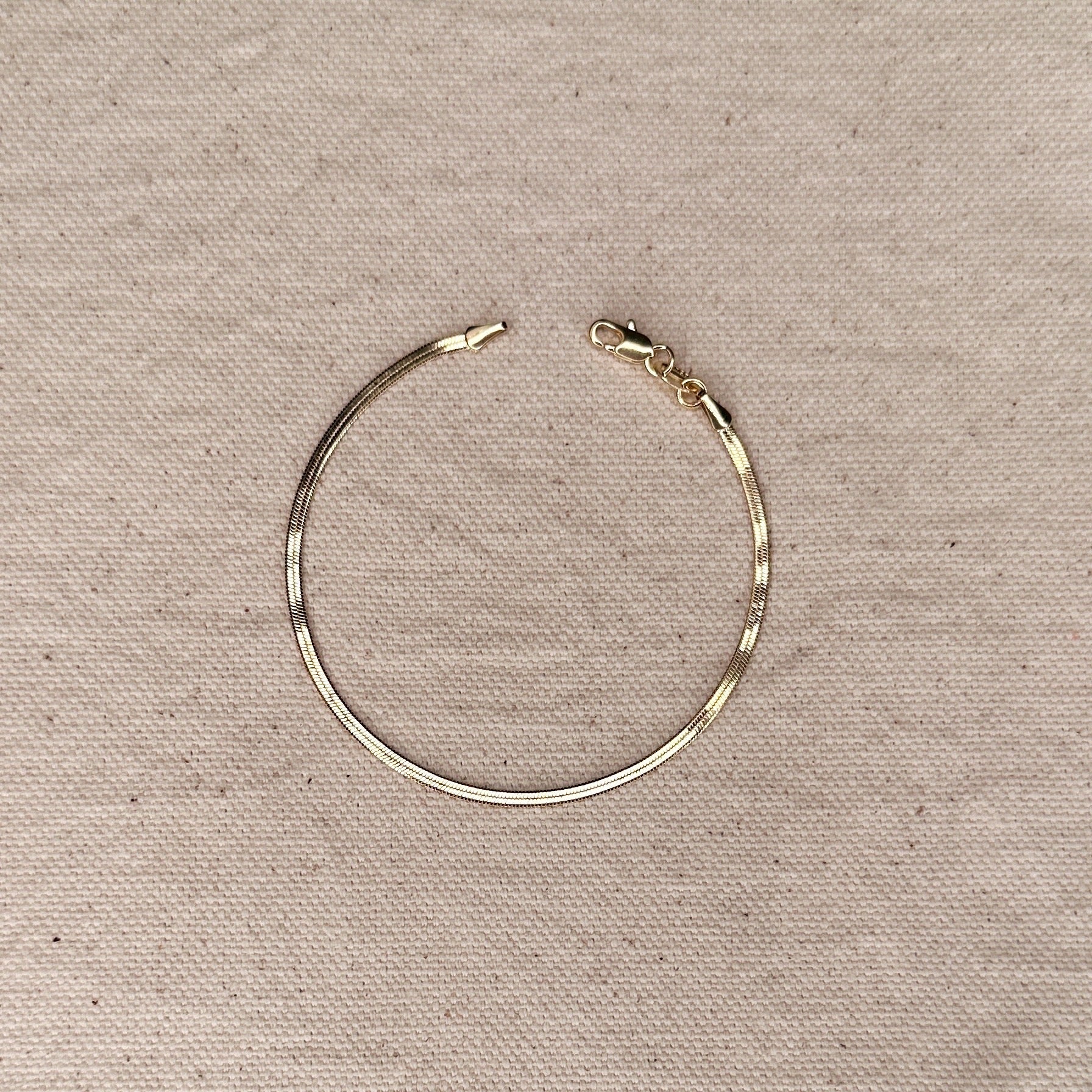 This stunning herringbone chain bracelet is pure elegance on your wrist. The intricate flat-link pattern catches light from every angle, creating a mesmerizing liquid gold effect that's absolutely captivating. At 2mm thick, this isn't just jewelry - it's a confidence-boosting statement piece that whispers luxury.