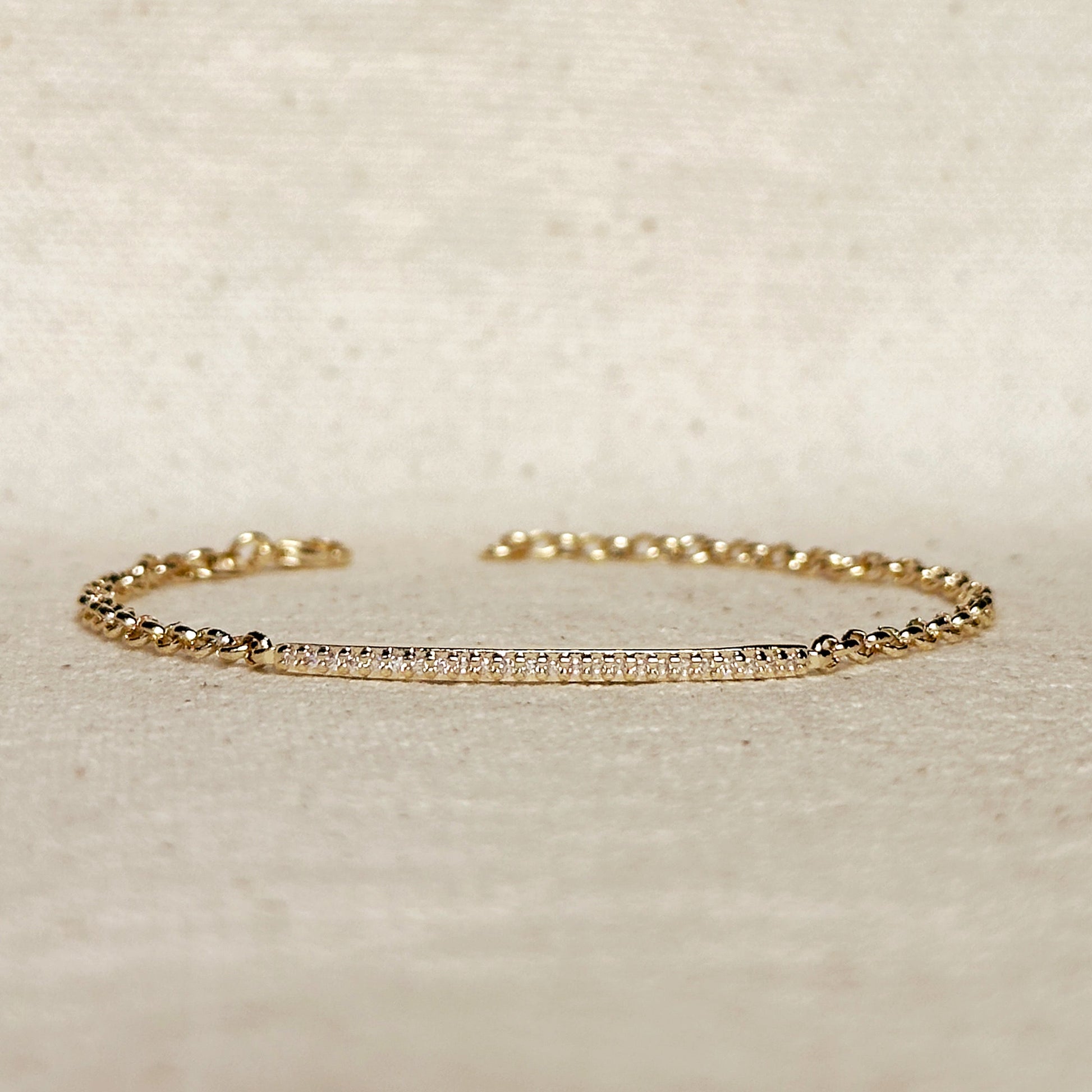 Elevate your everyday style with this stunning 18k gold filled CZ bar bracelet that perfectly captures modern minimalist luxury. This diamond bar bracelet features brilliant cubic zirconia stones that create a sleek line of sparkle, making it the ultimate accessory for the sophisticated woman who loves understated glamour.