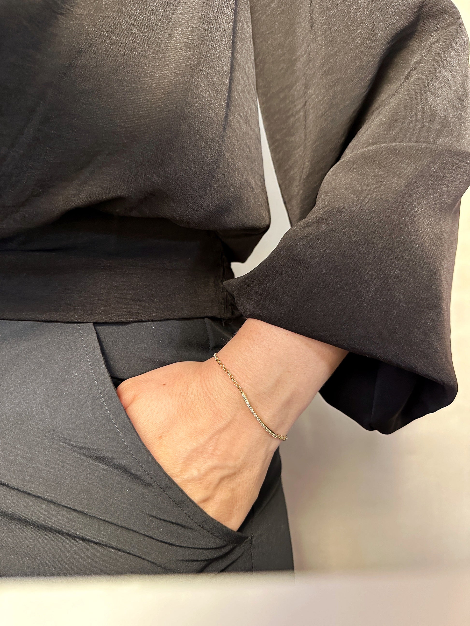 Whether you're building a capsule jewelry collection or adding to your existing pieces, this CZ bar bracelet offers the versatility to complement any style - from boardroom meetings to weekend brunches.