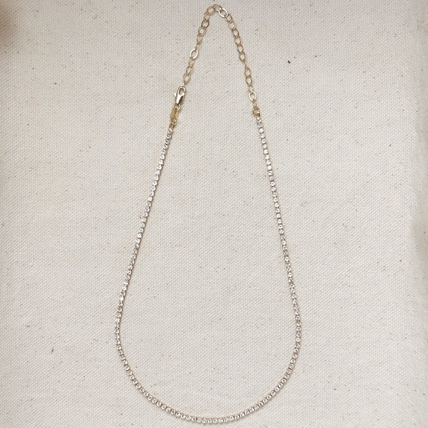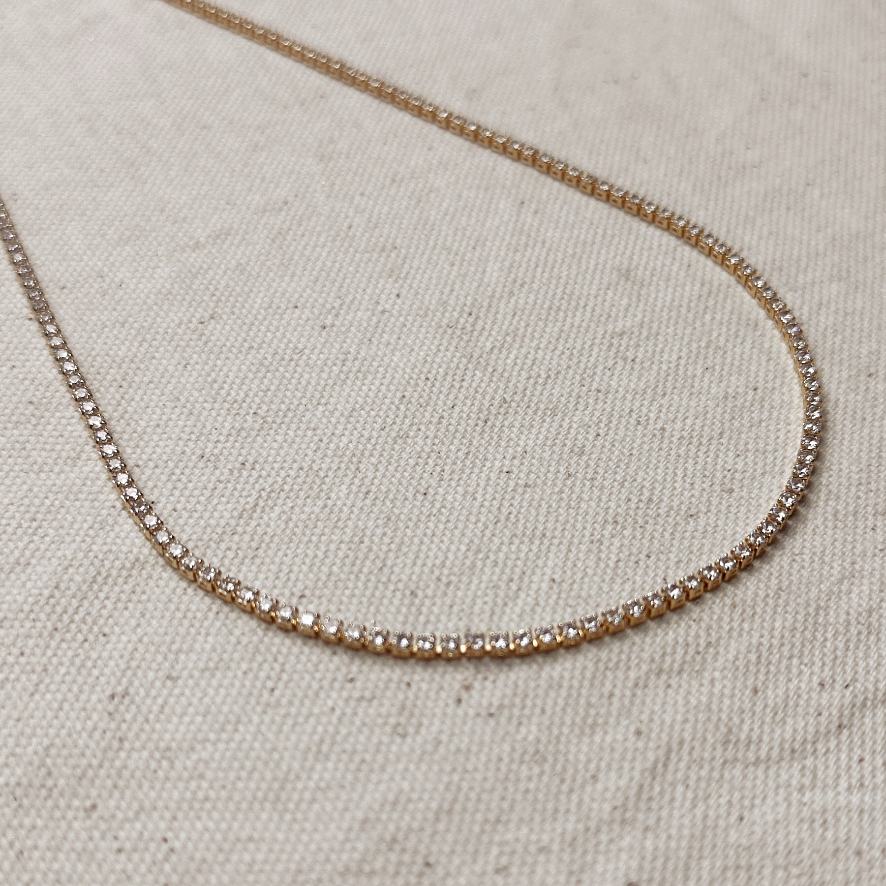 Make a dazzling statement with this breathtaking 18k gold filled tennis necklace that brings luxury and sophistication to every outfit. This stunning CZ diamond necklace features brilliant cubic zirconia stones that sparkle like real diamonds, giving you that coveted high-end jewelry look at an accessible price.