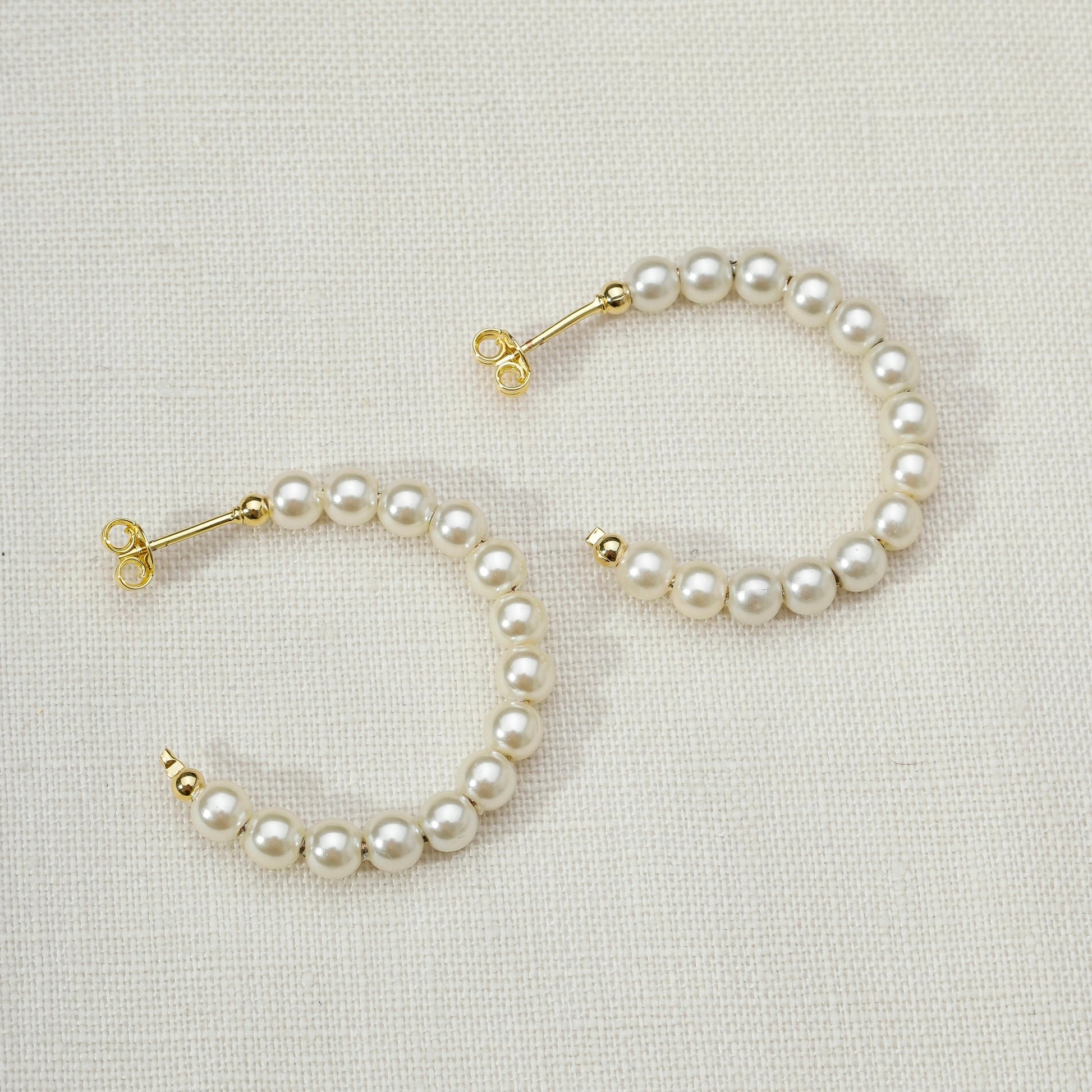 Bigger size c-hoop earrings to give you control of your style environment. Great luster quality simulated pearls.