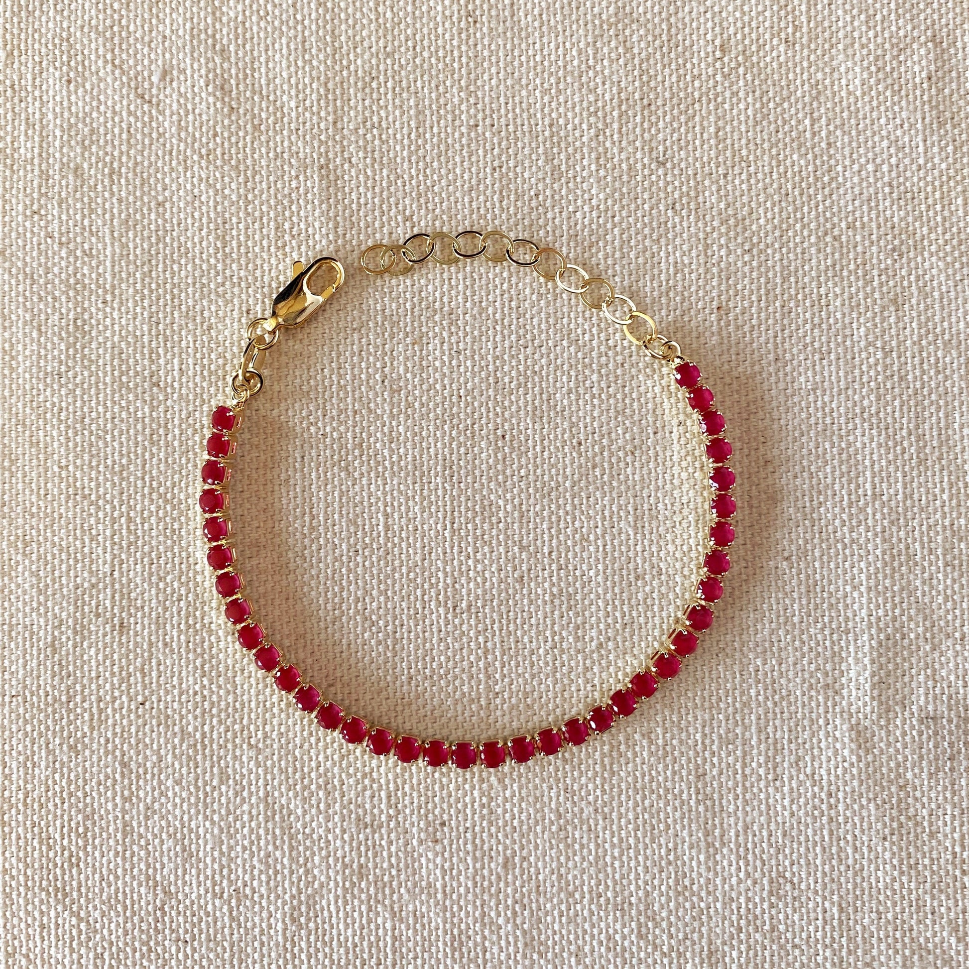 18k Gold Filled 3mm Cubic Zirconia Fuchsia Bracelet