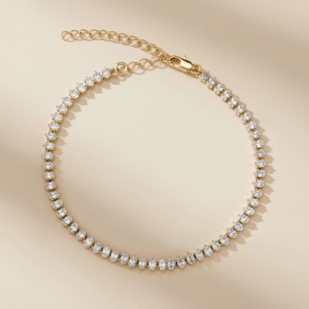 Elegant Marquise Tennis Bracelet | 18K Gold Overlay | AAAAA Cubic Zirconia | Luxury Jewelry