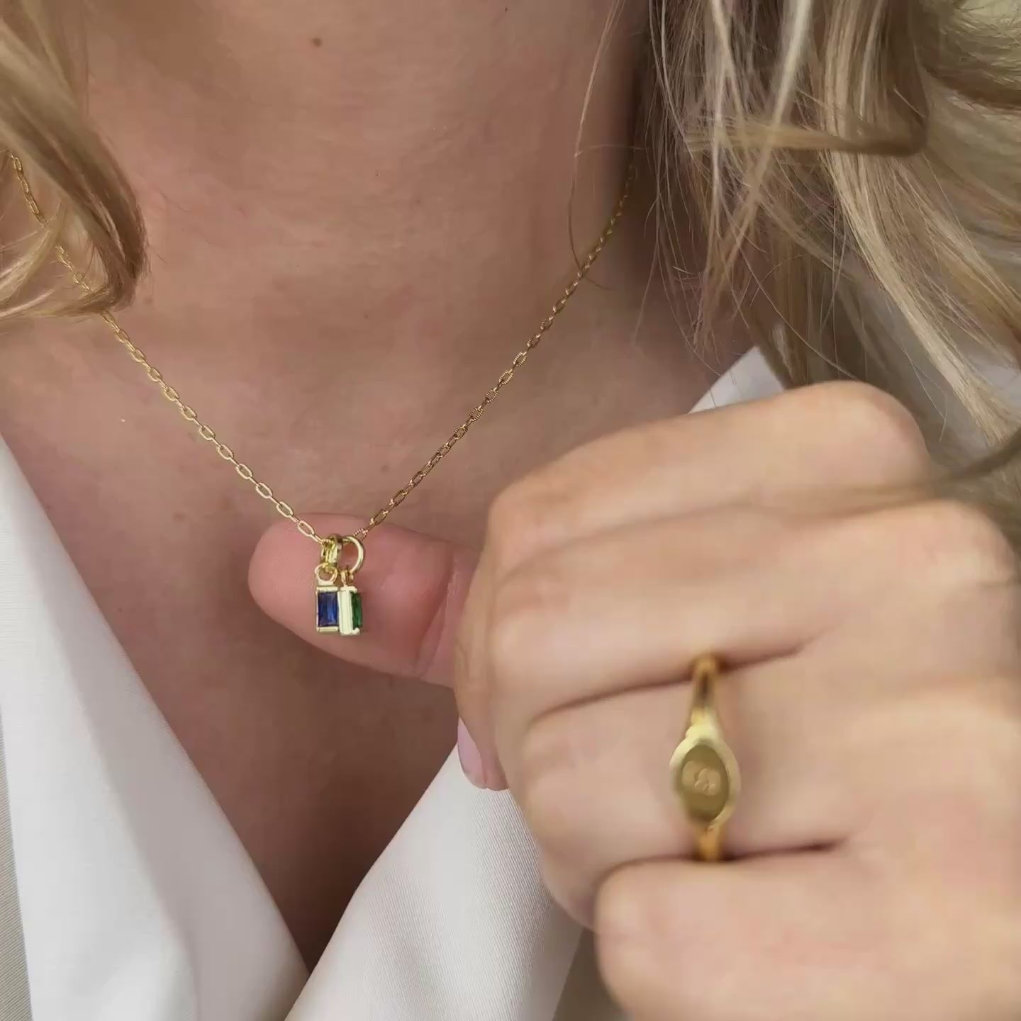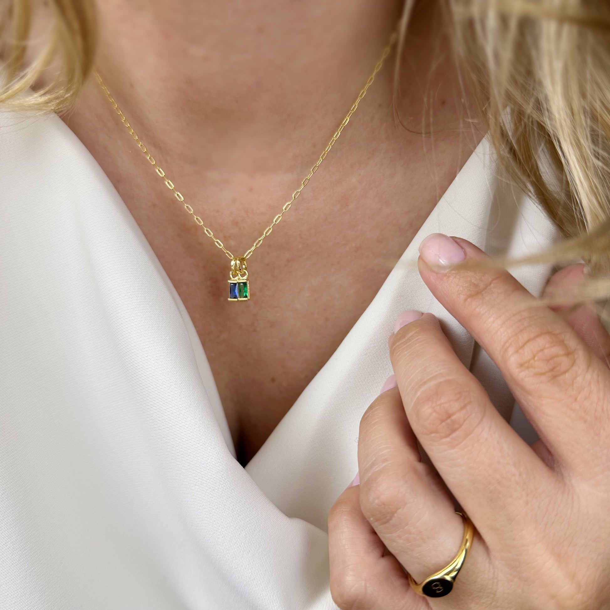 Celebrate every birth month with our exquisite 18K Gold Filled Baguette Birthstone Pendant – featuring premium cubic zirconia stones in authentic birthstone colors, perfect for personalized jewelry and meaningful gifts.
